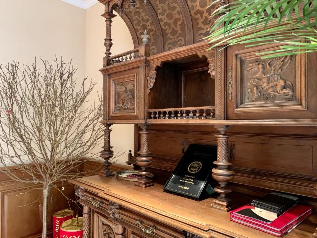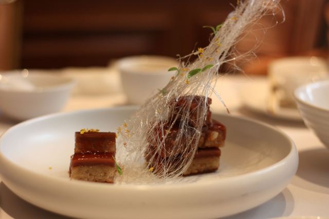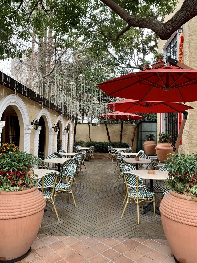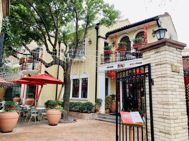 餐厅位于一幢老式洋房内,菜品是正宗的上海风味,餐具及摆盘都很精美。餐厅使用复古的油画和红丝绒地毯装饰,复古又高雅。还有一个精致的小花园,在此用餐自然舒适,到了晚上,花园内吊灯亮起,又十分浪漫。