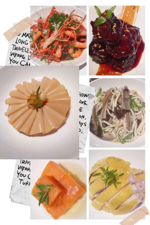 话梅排骨,酱爆猪肝,南瓜酒酿小圆子,秘制花螺,松鼠桂鱼,响油鳝糊,酒香豆苗,总统牛肉,茭白炒现划鳝丝,家乡腌笃鲜,鲜辣炝花螺