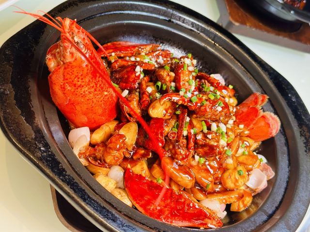 小花花的美好饮食日记能把本帮菜的浓油赤酱、江南味的清鲜雅致, 和小洋楼的复古情调揉成一团的, 玫瑰厅算一个代表性餐厅了🌹 前菜一上桌,就懂什么是“老底子的讲究” 老上海土豆色拉是必点的。 土豆炖得绵密,混着酸黄瓜和红肠丁, 现调的色拉酱,酸甜里带着点奶香, 一勺下去,就是是小时候的味道。 醉花蛤 花蛤吐得干净,浸在料酒里, 香气钻进肉缝,嗦一口, 鲜得舌尖打颤~下酒菜必选 ◔.̮◔✧ 鸡汁百叶包 百叶黄的得透光,裹着细碎肉馅, 咬开瞬间,肉香混着百叶香涌出来, 汤汁鲜得能泡饭。 茭白炒现划鳝丝 这个鳝丝更见功夫, 鳝丝滑嫩不腥,茭白脆甜吸足了酱汁, 清炒足见水平!真的赞! 鸡头米百合炒虾仁 鸡头米糯得有嚼劲,百合脆嫩带甜, 虾仁白胖Q弹,清炒得少油少盐, 一口下去,像把江南嚼在了嘴里。 古法干煎小黄鱼得趁热吃🔥 外皮煎得金黄酥脆,鱼肉却嫩得能抿化, 撒上椒盐,连鱼骨都能嚼出香味。 波士顿龙虾是聚餐的“面子担当” 龙虾肉紧实弹牙,还有上海特色年糕加持 年糕香裹着海鲜的鲜, 每一口都是实打实的🈵足! 总统牛肉藏着巧思, 大块的牛肉炖得恰到好处,筷子一戳就透, 酱汁慢熬的,甜中带点微酸, 中西味撞得恰到好处,难怪成了熟客的必点。