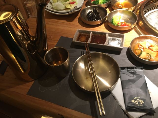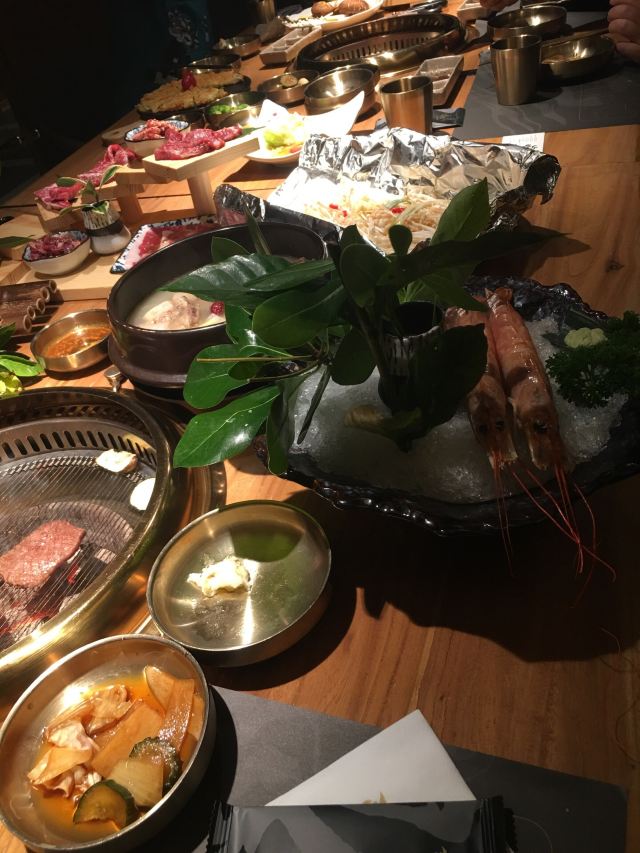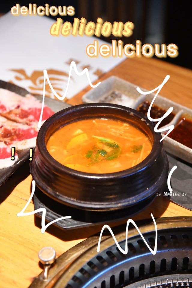 MICHAELDADA火炉家黑牛店 隐藏在一众大排档似的饮食店之中 用餐区在二楼 没想到别有洞天 整体装修是木质格栅区隔 地面干净空气良好似乎不像传统烤肉店 如此偏僻小店五点半拿号前面竟然有十二桌 入座后金光闪闪的韩料餐具很是干净 让人用餐心情大好 有服务员专门前来全程帮助烧烤 八阶高升黑牛组合 最近比较流行的阶梯式烤肉 牛肉还真是蛮不错 有点不像这个人均的肉品 下次若是再来会尝试十五阶梯 特级雪花肋排 还是比较喜欢这种实实在在的大块肉 肉嫩肥瘦相间 适合大快朵颐 深海红魔虾 蛮大的两只虾 已经开背洗净 配芥末可以当刺身 也可以烧烤食用 铁板鱿鱼 鱿鱼占比很多很实在 看似很辣但仅仅是一点点微辣 牛排汤 牛骨带肉 没有一点肥肉 骨肉根根清晰 就算冷却后 肉汤也没有凝结白色油脂状 很是受欢迎 锡纸金针菇 酸酸甜甜的开胃极好 双人食吃得饱饱的 性价比很不错的店 推荐