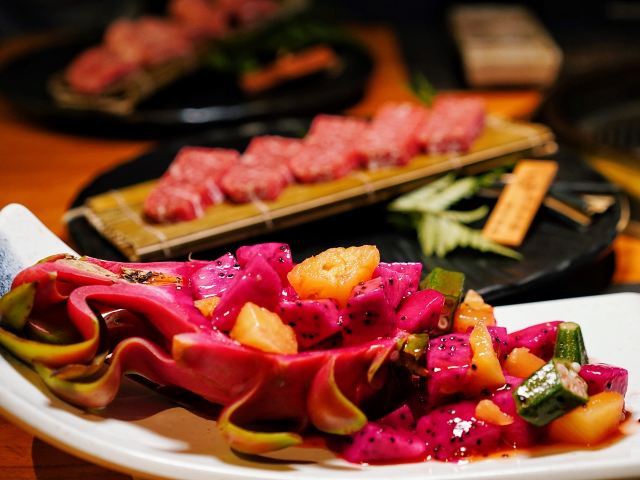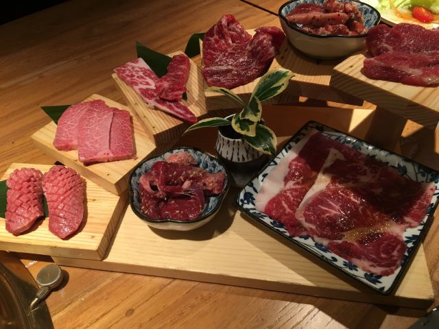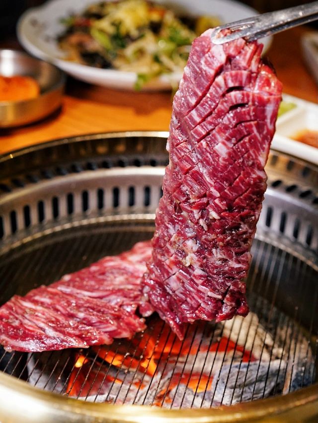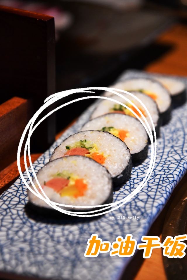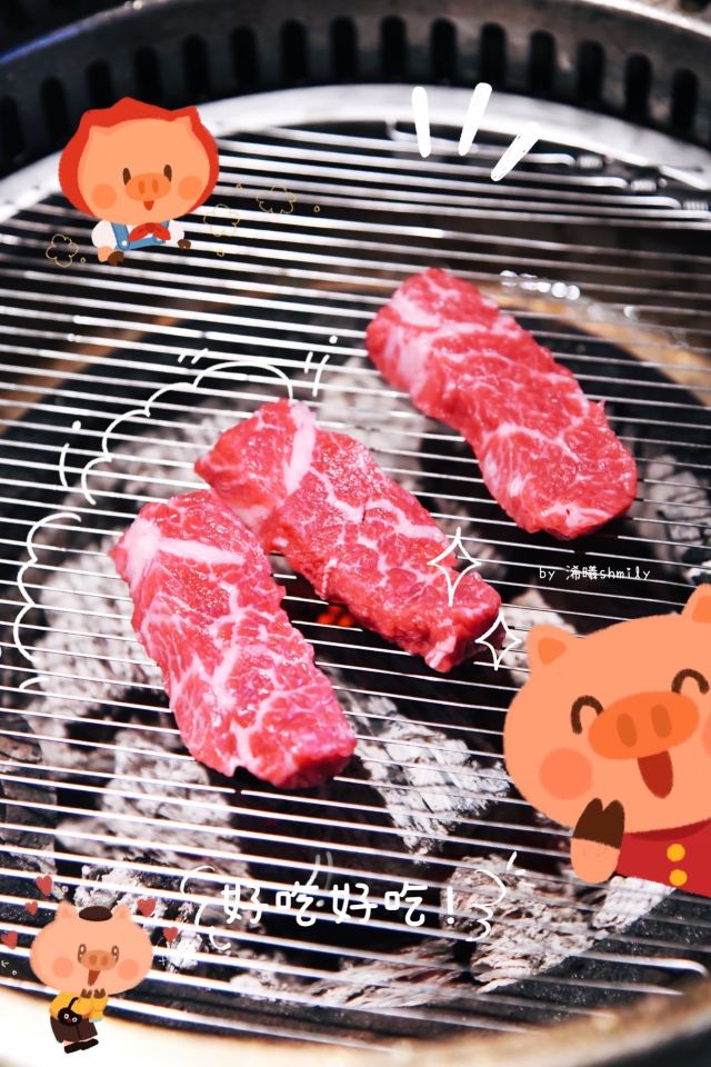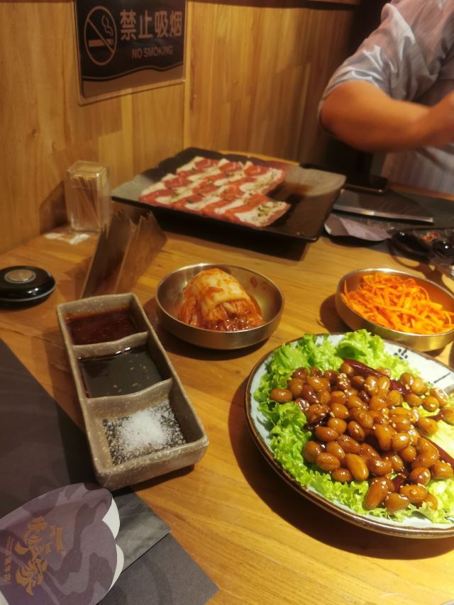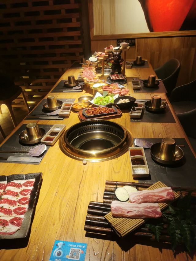 浠曦shmily坐标天乐广场,门口停车位不太多,如果周末的话也可以考虑停在旁边的商场停车场~ 环境: 整体环境很日式,有一些独立的半开放式的包间,还是比较适合宴请的~ 一楼只是门面和等位区,另外可以通过透明厨房看到烤肉的食材~ 所有的用餐区域都在二楼,最佳的座位就是靠窗和包间的位置~ 「黑牛极上五种组合」 羽下、花肉、横膈膜、三角牛腩、雪花肋排的组合~ 最爱的是横膈膜,吃起来口感是带有一点脆感,比牛舌更有韧性~ 其次的话雪花肋排显得比较肥美,搭配酱汁还是蛮不错的~ 「蜜汁牛五花」 超爱的牛五花,薄片一点都不老,入口非常入味鲜嫩~ 牛油果蔬菜沙拉 沙拉的用料很足,牛油果、核桃、虾仁之类的品种丰富~ 用沙拉酱汁的调配在口感上也更加清爽和适合夏天~ 「火炉家海鲜葱饼」 海鲜饼好评必点,做的是那种脆脆的口感~ 也很细心的切成了小块,吃起来很方便,每一口都能吃到章鱼之类的小海鲜~ 「锡纸金针菇」 这个只用烤到锡纸包鼓起即可,里面的调味让金针菇的口感更加鲜美了~ 「紫菜包饭」 很硬的一种主食,适合有男生的情况下点~ 「大酱汤」 大酱汤用料还是很丰富的,搭配米饭简直一绝~ 整体来说吃的真的是相当满足了,肉肉最棒~