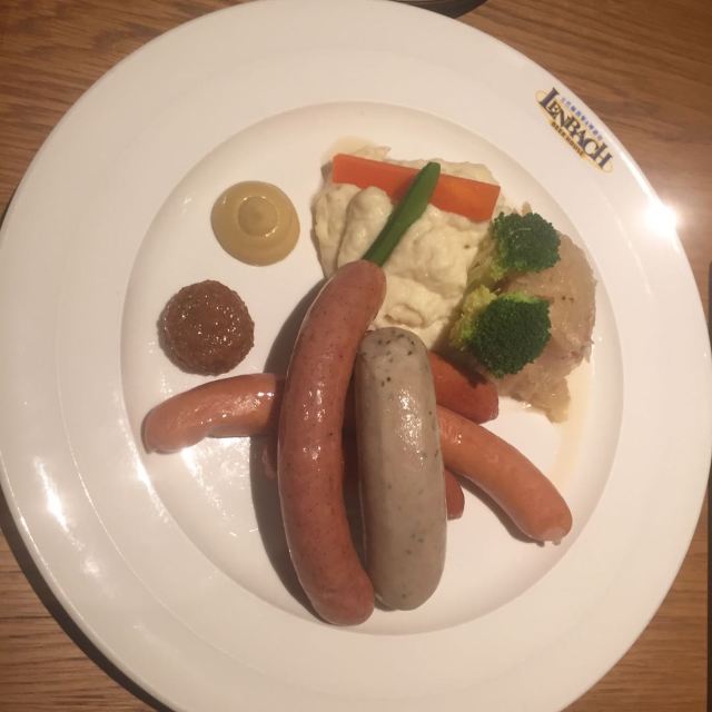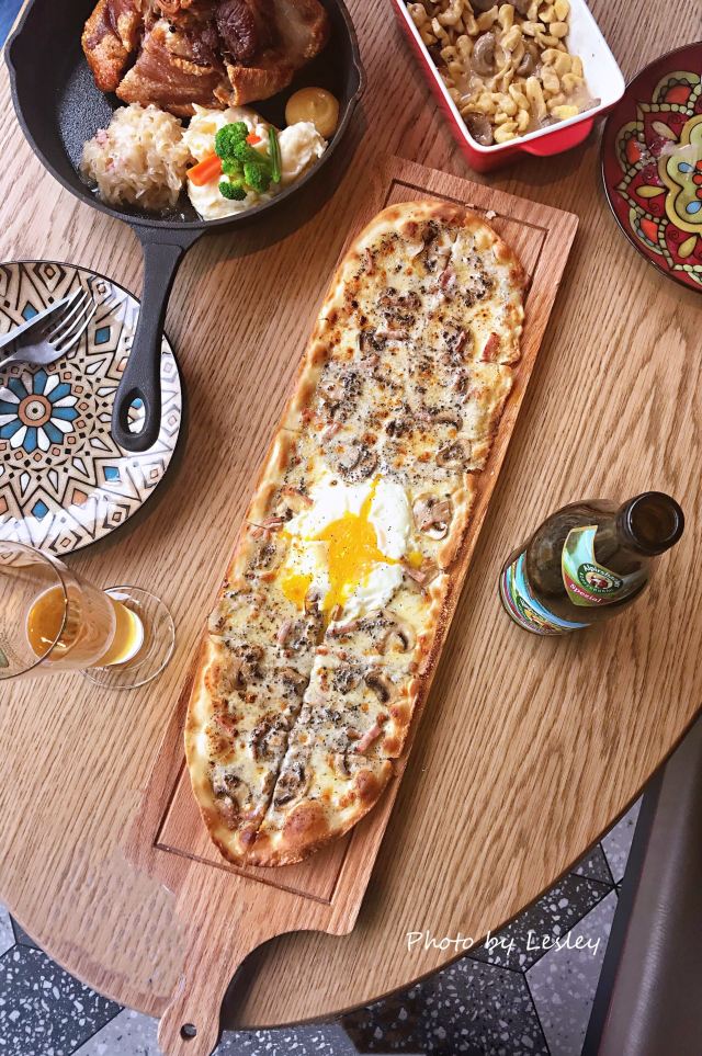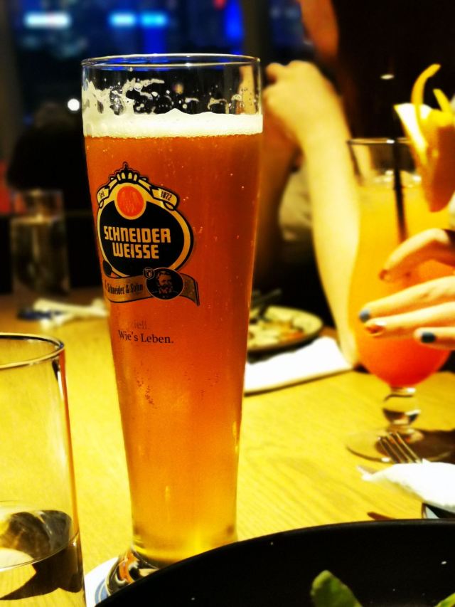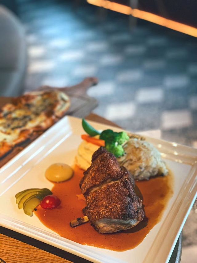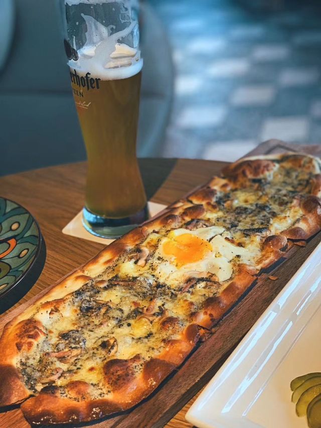 桃桃淘丽丝近期会二刷的餐厅,环境、服务、菜品满意~ 白玉兰广场的外圈,在里面绕了一大圈又绕出来了,星巴克臻选店的楼上; 进店就是大吧台,错层的空间,木质餐桌,靓黄色菜单很好玩,有种翻笔记的感觉; 正对魔都三件套,虽然地处的楼层不高,视野还是不错哒[强],喝喝小酒,吃吃美食,看看风景,夏日的夜晚很有feel; 「招牌传统巴伐利亚沙拉」量大,牛柳也挺嫩; 「德国香肠拼盘配土豆泥和酸椰菜」中份️五种香肠,有款会爆浆的,印象深刻,煎的都恰到好处; 「黑松露薄饼」强烈推荐‼️,真的好好次,一口气吃了3⃣️块,加了黑松露,口感真的很不一样,中间加了个蛋,颜值担当啊; 这里的服务员都是小鲜肉、小仙女啊,卖相都在线,态度也亲切又周到; 我要去安利小伙伴二刷走起啦[呲牙]!