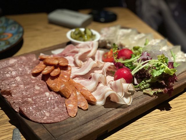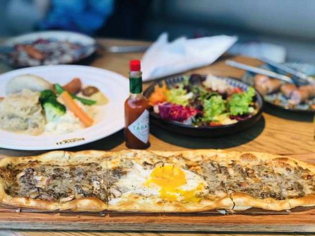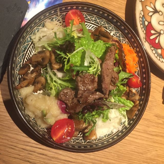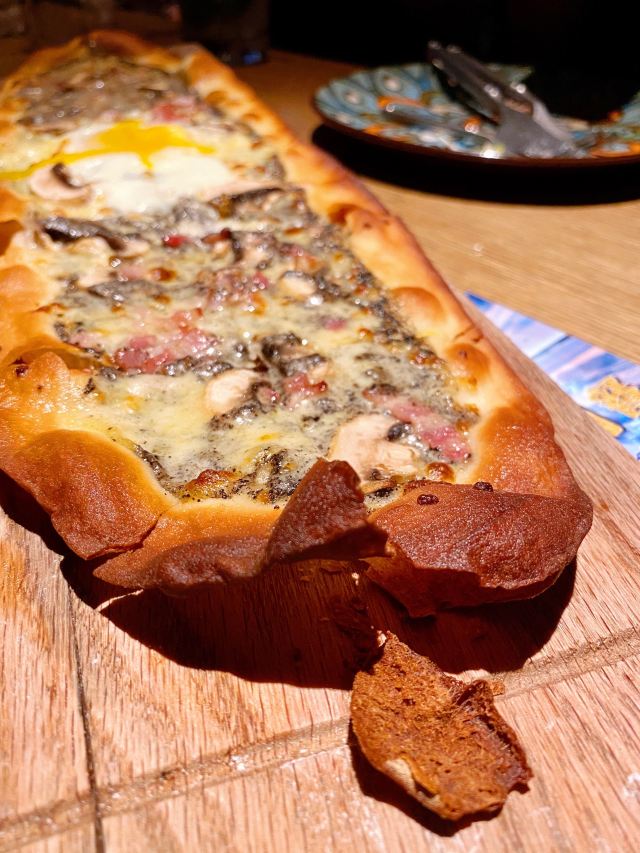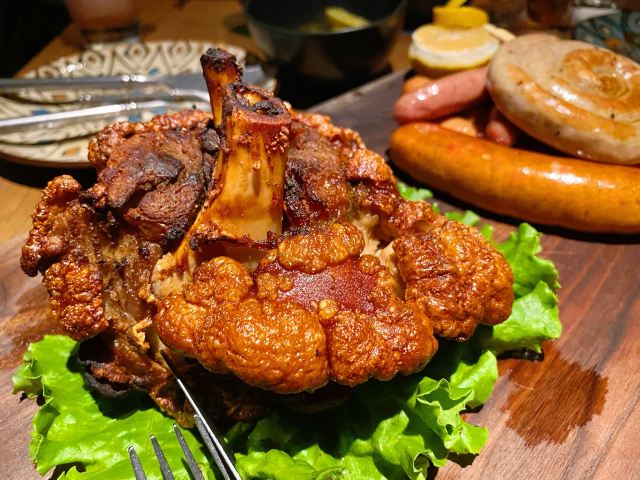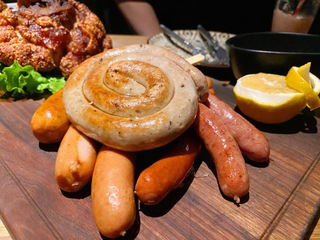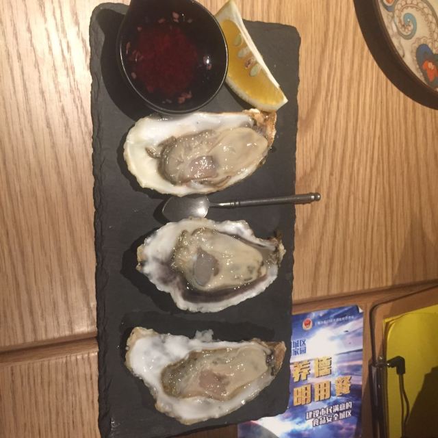 LENBACH很开心跟伙伴相聚在这里。也很有气氛的一个地方,当夜幕降临之后。 强烈推荐:石榴啤酒!好喝的跟饮料似的!莫吉托也很棒。 爱尔兰生蚝一人2个,味道还可以,滴上辣油!生蚝肉和壳已经分离,吃起来也方便许多。 黑松露薄饼也是强烈推荐!无与伦比的好吃。[色][憨笑] 烧烤大拼盘非常的爽,量巨大。。。6个人吃刚好。。。猪肘子外酥里嫩,香肠凹成棒棒糖的造型也是醉了。。。还有个是炸牛排,独特的体验!
