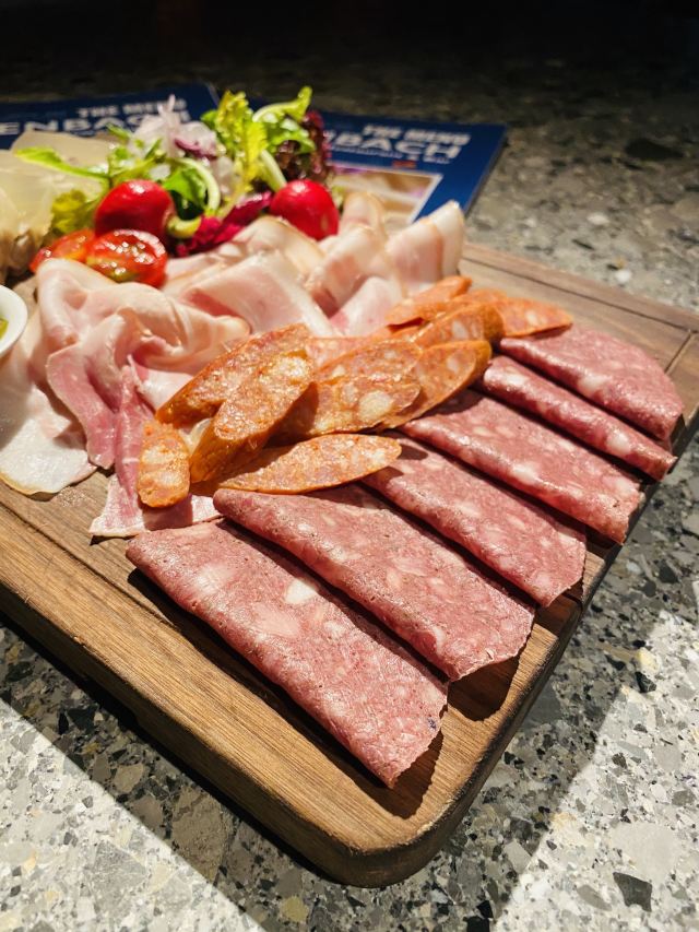 爱尔兰生蚝,黑松露薄饼,招牌传统巴伐利亚沙拉,西西里冻糕,德国香肠拼盘配土豆泥和酸椰菜,法国生蚝5号,德式古法烤猪肘,黄油干式熟成美国谷饲战斧牛排,兰巴赫招牌啤酒,兰巴赫招牌面筋配牛肉口蘑,藤椒鸡翅