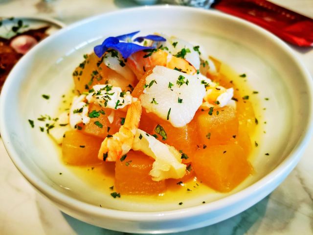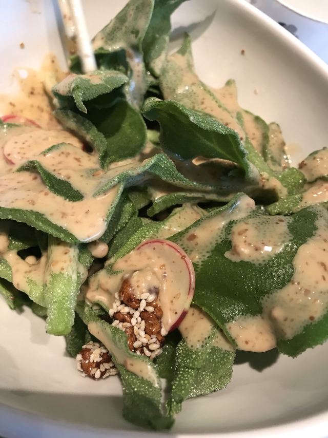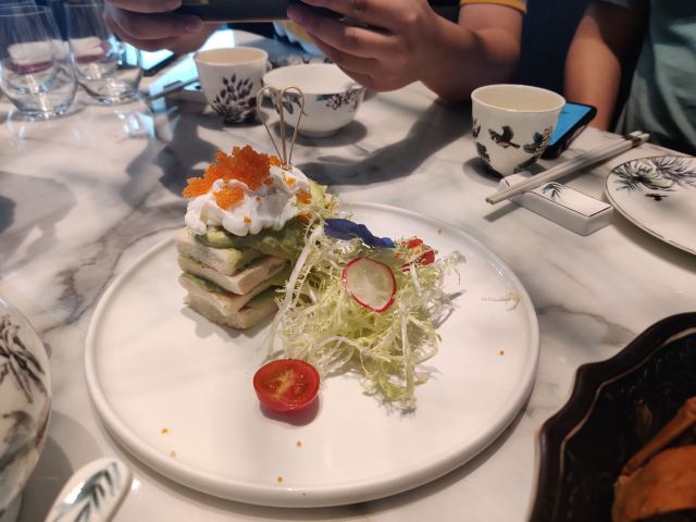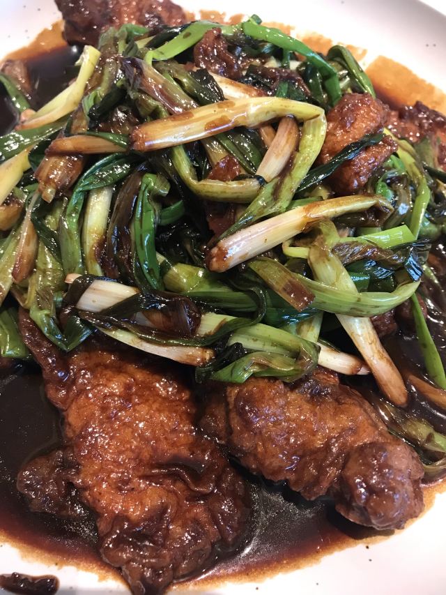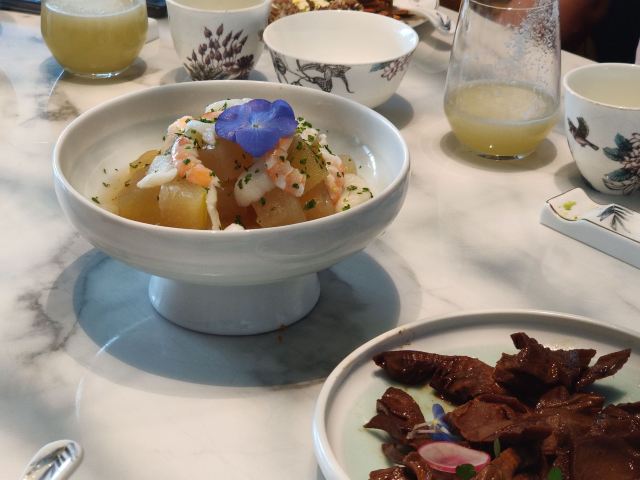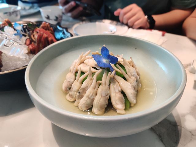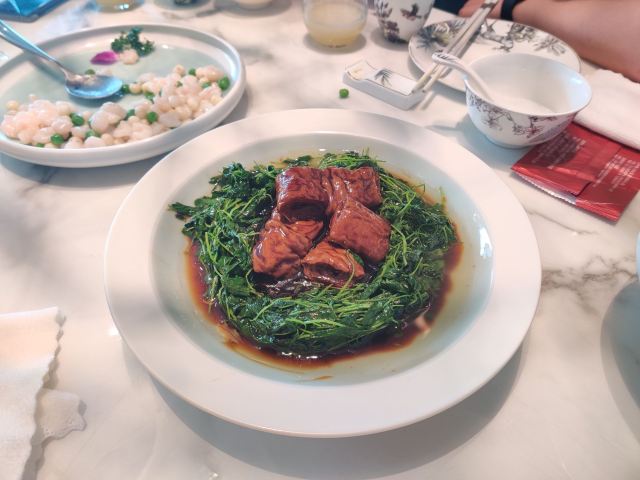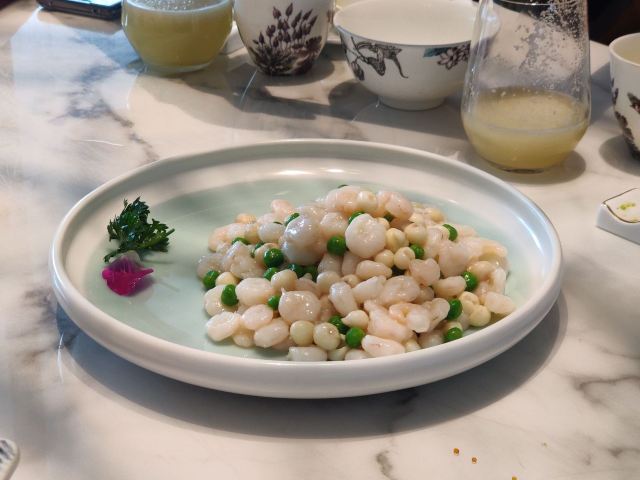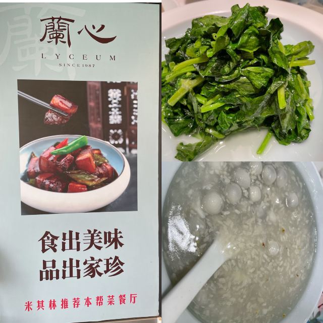 某日参观完犹太人博物馆,饿得就差爬到白玉兰了。但是越饿越不想随便吃什么快餐之类的东西,可是早已过了饭点,没想到兰心还在营业中。飞快的点完餐,「大排」,浓油赤酱的不用说了,就是外婆妈妈烧的味道。「油爆虾」,基本被我一个人消灭掉,老外不会吐壳,哈哈!「萝卜丝海蜇皮」,爽脆可口。「麻酱冰草」,这个菜我也会做,老外惊叹不已,觉得那个拌料的酱是点睛之笔,我很想告诉他就是丘比芝麻酱呀,临走我送您一瓶好了。「塔菜冬笋」,时令菜,可惜我个人不爱吃冬笋。「苔条花生」,这个作为零食倒是不错,虽然我个人不怎么爱吃花生也觉得不错。好了,三个人吃的基本光盘,心满意足的下午茶去喽!