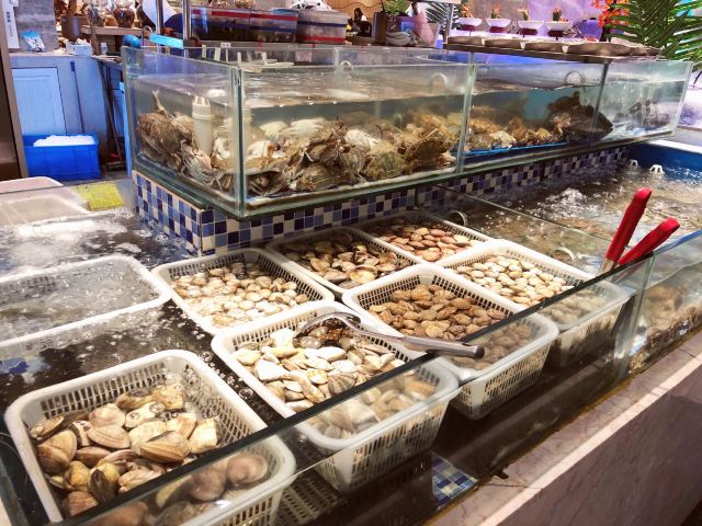 亚马逊环球海鲜美食总汇,位于中山公园商圈的长宁来福士广场内,是一家规模很大的自助餐厅,主打海鲜,可以生吃的各种刺身,更有许多稍稍烫一烫就能吃的生猛海鲜,每人一个小暖锅,自己动手,海鲜大餐吃起来! 然而环球美食远不止这些,还有各种烤肉类,牛羊排、泰国菜冬阴功汤、日料寿喜锅、各种巧克力、各种面包西点,数不胜数,一顿饭,完全吃不过来。