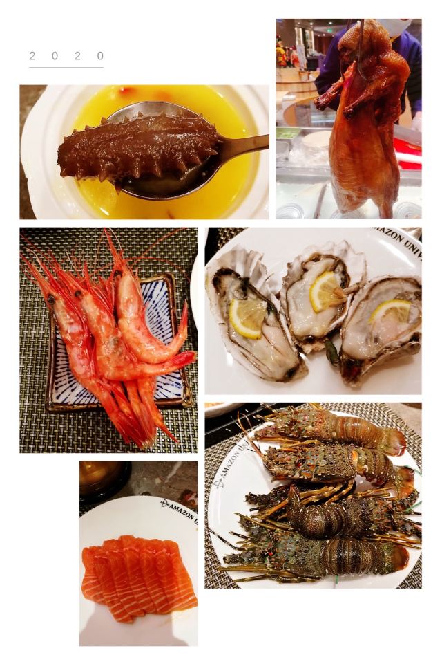 帝王蟹,海胆,澳洲小青龙,海胆刺身,厚切三文鱼,冰镇青龙仔,烤大块榴莲,鲍鱼,法式有滋滋的香煎鹅肝,海鲜拼盘,M7和牛,日料北极贝,鳌虾,海鲜头盘,涮食老虎蟹,深海斑鱼,手工马卡龙,冰镇阿拉斯加雪蟹脚,烤羊排,烤生蚝,小青龙们,提拉米苏,小青龙,小青龙牡丹虾拼盘,菠萝蜜,黄金蟹斗,美国极黑猪肉,甲鱼