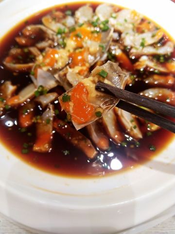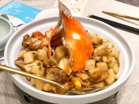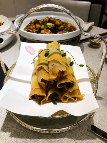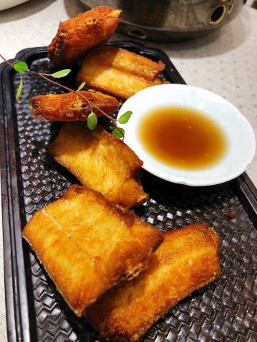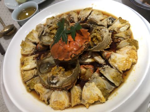 v小奇国金中心里的小海鲜,环境自然不用说,高端大气上档次,聚会宴请好选择。 作为一个海鲜爱好者,宁波海鲜一定要尝一下,种草很久,这次终于在小伙伴的带领下来拔草了。 招牌十八斩必点,宁波的红膏呛蟹很有名。一上桌就被这醉人的香气所吸引。将蟹切成18块,红白相接,是个技术活,撒上十几种配料,算是一道功夫菜了。 蟹肉透明,入口即化,根本停不下来。 心急吃不了黄金螺,上桌后凉一凉再下手哈。螺肉天然的鲜味着实让人沉醉,口感有弹性,吃起来有嚼劲。 蟹粉焗年糕,第一次吃,以往都是蟹粉豆腐啦,蟹粉捞饭啦,这一次是把宁波的年糕搭配上了。金黄的蟹粉伴着软糯的豆腐,我可以吃一大碗。 阿,还有一道黄鱼春卷,一口咬下去,黄鱼的鲜瞬间在嘴里爆发,我觉得下一次一定要2份起点了。