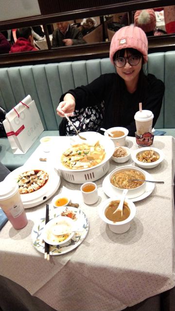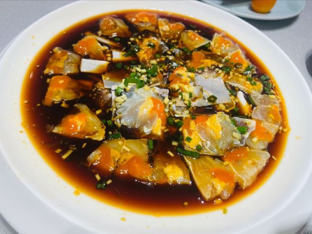 heimuheimudd🍴甬府尊鲜(国金中心店) 位于国金中心4楼,🚇地铁2号线、14号线“陆家嘴站”可到。 带爸妈一起去吃,提早预约了座位。 🌺【环境】 坐的4人座,座位间隔有点窄,隔壁桌吃啥能看见,说啥聊啥也可以听到👨👩👦有点热闹。 🌈【菜品口味】 凉菜拌海参|调味酸酸甜甜辣辣,海参很🈶️弹性,入味。配的螺肉,脆脆的口感好.是很开胃的凉菜。 麻婆豆腐烧水潺 |豆腐和龙头鱼非常入味,咸鲜鲜嫩,好似一桌宁波菜里的一束🎆在口中爆炸。 堂灼十八斩|每次去必点👍太嗲了,新鲜的食材才能做得如此鲜美。咸淡适宜,带有淡淡的甜味,回味无穷😍🤤 酱汁蒸带鱼 |感觉比黄金带鱼好吃。蒸出来的更能吃出带鱼的鲜味❤️带鱼非常新鲜,鱼肉比较肥的。 黄金带鱼|点了小份4块,不咸,配有醋,可以增加鲜味,一定要趁热吃💪 目鱼烤土猪肉|目鱼很大块,非常有弹性,但是比起其他菜就没很惊艳。 手工宁波汤圆|饭后甜品,糯叽叽爱好者必点🔔汤圆皮薄有弹性,芝麻香甜不齁,真是一绝。 💁♀️💁【服务】 生意很好,感觉人手不够。加茶都要自己来。 可以点茶也可以要柠檬白开水。有点失望。