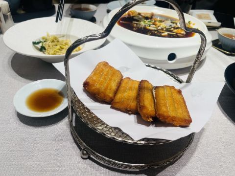 想吃宁波海鲜,还想要高档点的环境,那么这家庸府尊鲜就再适合不过了。餐厅的设计豪华大气,无论店内摆设,还是楼梯设计,都显得较为品位,每次来这里都得提前预约,否则可能登上一个多小时。陈年花雕大闸蟹是这里的招牌产品,蟹的肉质饱满又新鲜,浸泡在花雕中,有种让人回味无穷的感觉。黄金带鱼,名不虚传,粗壮的带鱼经过油炸的洗礼,外表脆脆的,还泛着金黄,老少皆宜。宁波手工汤圆更是超出了我的期望值,白色的汤圆皮薄得能看出里面的黑色馅,在水中一阵飘逸的感觉后入口更是一番享受,实属大爱!