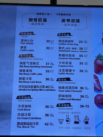 拿铁咖啡,澳洲小白,冷萃咖啡,原味千层蛋糕,经典栗子蛋糕,黑森林蛋糕,杨枝甘露爽冰乐,卡布奇诺,精选黑咖啡,摘星燕麦拿铁