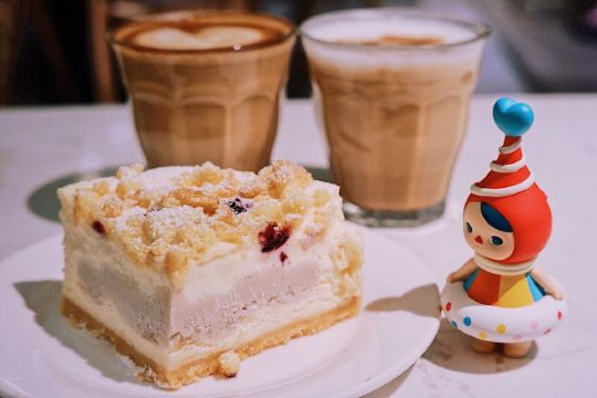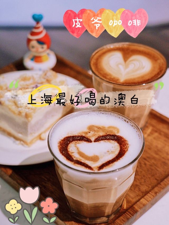 听说午休来皮爷喝一杯澳白,回去效率提升10000个点‼️不管任何时段前来打卡,阳光露台上总是座无缺席。 皮爷咖啡有着全上海最好喝的澳白,纯正澳洲血统不接受任何反驳🙅🏻♀️比拿铁少1/3牛奶故而口感更浓郁,7OZ的标准size完美融合牛奶咖啡的黄金配比。 为了确保咖啡老饕们能享用到最佳口感,只选用21天内手工新鲜烘焙的浓缩咖啡豆,搭配明治牛奶的浓郁脂香,每一口都浑厚醇郁柔顺幼滑。 新推出的熔岩澳白则是澳小白的plus升级,丰富奶泡绝美拉花颜值吸睛,最重要的是还有迷人的流沙沉降,会令你一秒沉醉怦然动心💓 蓝莓芋泥奶酥芝士蛋糕可以说是芋泥狂魔们的首选甜品,浓醇蓝莓芝士内裹香甜不腻的芋泥夹心,简直一口沉沦欲罢不能。