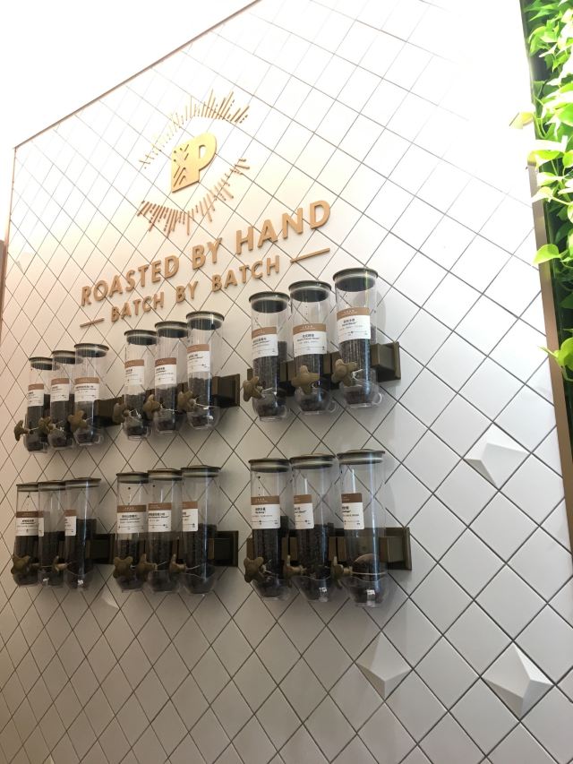 泡泡龙他爸Peet's Coffee去了不少家了,最早武康庭那家有室外阳光平台,ITC地下二层那家则门口地方开阔,凯德晶萃和长宁莱福士的分店空间舒畅,港汇恒隆广场地下一层的分店虽然面积小了点,但热闹的很,但IAPM三楼这家却有点不一样的感觉。远看地方不小,但绝大部分给工作台占领了,顾客的座位是围绕着一根大柱子,所以如果没能找到舒适一点空位的话,那很高兴要庆祝一下,这次能坐上边喝咖啡边面壁修炼的座位了。而且这里没几个位子,所以常常不得不去正下方二楼的Seesaw。不过据说Peet's现在有时可以在室外平台坐坐消费了,没去过无法想象那是怎样的平台,以后找个机会吧
