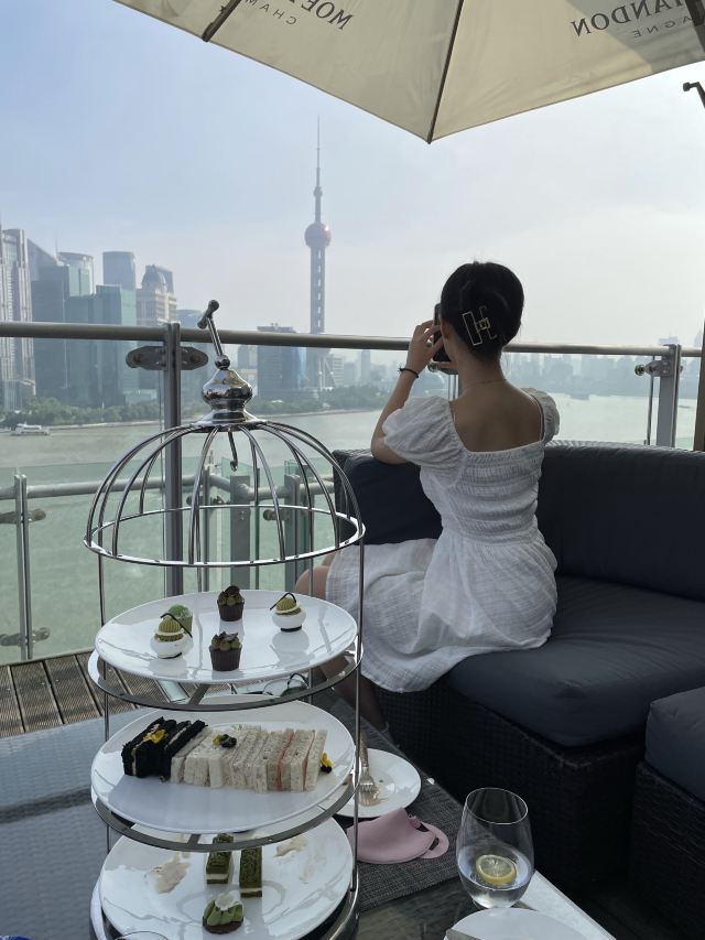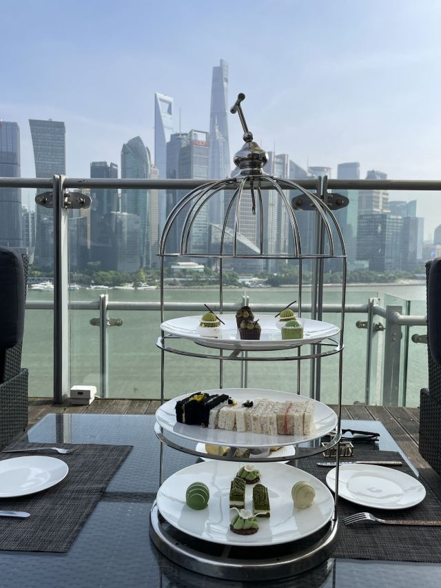三文鱼黄瓜卷,桃酥饼干,屋顶江景下午茶,依然可见外滩三件套,Scone,拿铁,司康,草莓奶酪蛋糕,焦糖冰淇淋,秋冬坚果系下午茶,伯爵红茶,橙汁