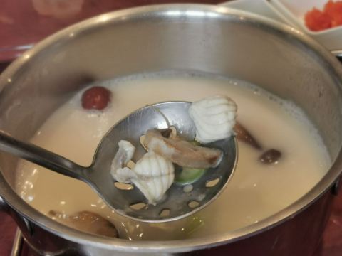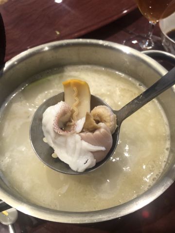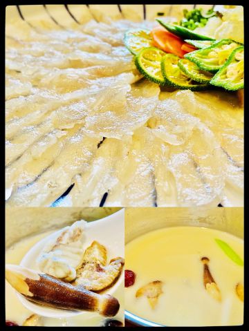 YMYK想吃火锅了,就约了家人朋友一起到这里,因为看中的是这一环境和出色的服务。包房+分餐制更加安❤ 有专门的泊车师傅,一进门我就发现他们家的小庭院打造的挺美的,既有日系的精致到细节,又有西式的优雅,挺好。 这个火锅还挺高级,台子大概是定制的吧,没有那种凹凸不平的样子。有机关,小点点一按就开始煮了。 选了河豚鱼锅底,汤头很浓白河豚鱼,刺身还能生吃,让我大饱口福了,好久不吃河鲜了。 节日里豪横一下,点了阿拉斯加帝王蟹,蟹可三吃,可以做刺身,还有煎熬封和天妇罗,这只蟹新鲜非常好吃。 除了火锅呢,还可以点到一些粤菜和日系的料理,满足味蕾 ฅ( ̳• ◡ • ̳)ฅ [服务铃]服务很贴心,一直帮着捞火锅里的泡沫,会介绍一下菜品的特色,服务特到位。