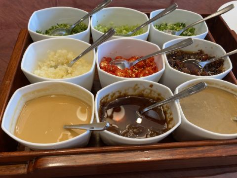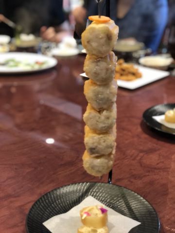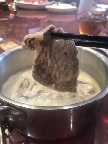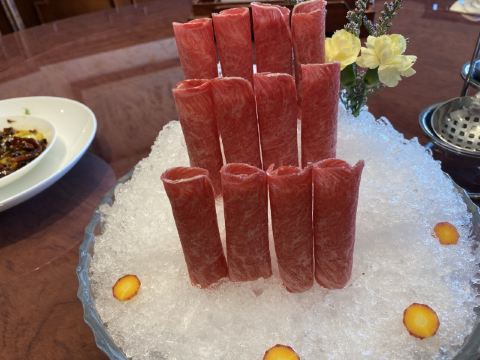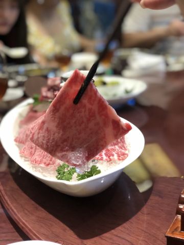 蛋花食游记西郊壹号南苑新开火锅,洋气的包房,精致的小锅,管家式的服务让人吃得舒心畅意,入口处的山水画精致就彰显格调。 一人一位的小锅,电磁炉形式嵌入桌子中,点的猪肚鸡锅底,胡椒味十足。一旁的人选的花胶鸡锅底里面的花胶也是大片在锅里,料足实在。 招牌牛肉拼盘,不同级别的和牛,和牛肉粒组成,还有牛舌,这个粉嫩的颜色就看得令人迷醉,即使涮过后雪花的纹路依旧在,划过酱油入口,奶香味十足,十分香甜过瘾。 鬼马虾饺,一串吊着,哈哈喜欢油条吸饱汤汁的口感,虾胶弹嫩好吃得不得了。 海鲜拼盘,十足的有料,霸气的东星斑,鲍鱼都是新鲜程度可见一斑。 最后的甜品也是可圈可点,堪比米其林,开心过糊,选用伊朗的开心果,颜色特别地艳,口感也很棒,细滑浓郁,好吃