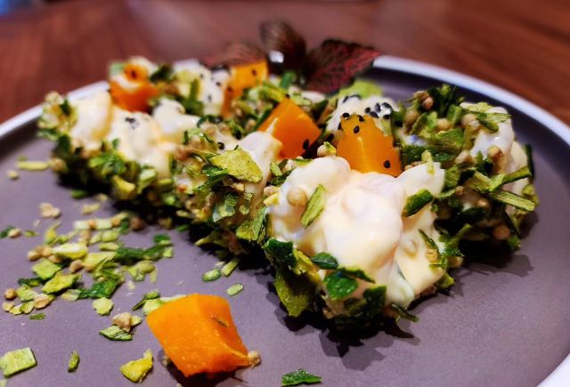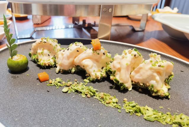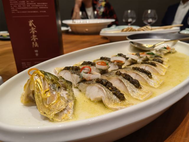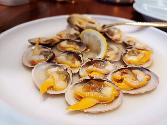原汁海胆水饺,奇妙虾球,原汁黄蚬子,开胃小菜,豆腐海胆汤,文火煨牛小排,金勾白菜,葱油活大连鲍,辣椒炒活辽参,东沟蟹香炒本鸡蛋,海胆水饺,生腌大红虾,家焖龙利鱼,去湿茶,香炒鸡蛋蟹,肉沫海参水饺,焦糖豆花,雪菜蒸黄花鱼