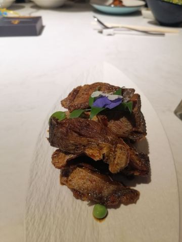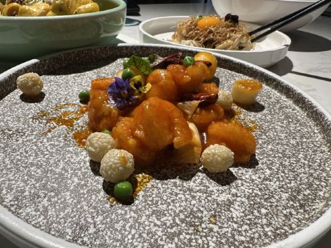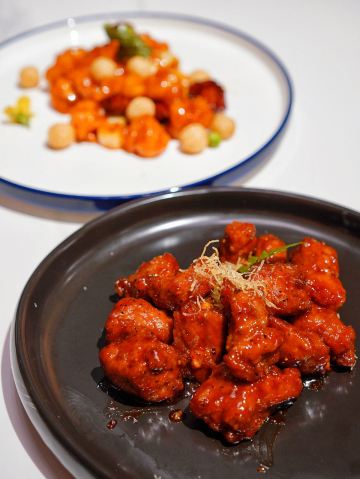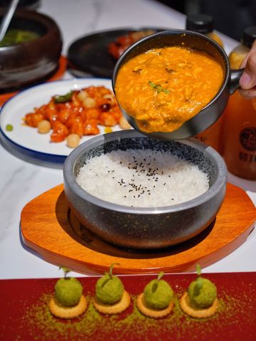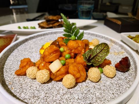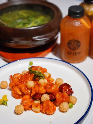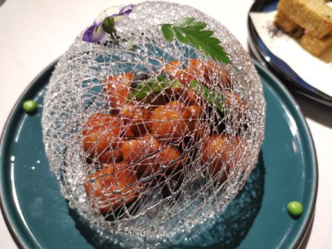 蟹粉捞饭,红酒泡沫牛仔粒,秋葵鹅肝,石锅海胆豆腐,银鳕鱼秋葵酥,秘制冻鲍鱼,糖醋小排,花雕鸡