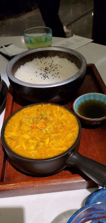 合生汇7楼的荟廷•宴,有种步入天宫的高级感,精致装修灯火辉煌,舒适的景观卡座带来惬意的用餐氛围,一呼即应的热忱服务,绝对是亲友聚餐和商务洽谈的至上之选。 荟廷不仅环境高大上,每一道菜都是一套风景,美不胜收的味蕾盛宴由此开启🔛 每桌必点的🦀️蟹粉捞饭🦀️,4公4母的天作之合,8只蟹的终极美味,每天都由上海老师傅亲手拆蟹,搅拌均匀以后,每一粒米饭都被蟹香包裹,光看这饱和度就引人垂涎三尺,仿佛整个人都得到了升华,真材实料的蟹粉绝对让你一口难忘。 💚秋葵鹅肝💚我敢打赌,惟妙惟肖的精致造型,你绝对猜不到它是鹅肝!肥而不腻入口即化,搭配养生食材秋葵,不仅创意满分,口感也是无可挑剔,绝绝子💯 🐔花雕鸡🐔一端上桌就扑鼻而来浓郁酒香,还没送入口中就已经醉了醉了☺️皮薄肉香滋补异常,绝对让你好吃到拍桌子! 🍤麻球宫爆虾🍤摆盘与配色跟菠萝咕咾肉颇有异曲同工之妙,大珠小珠落玉盘,看得我口水止不住,小巧玲珑的mini麻球外酥里糯,鲜香麻辣的宫爆虾球回味无穷。 🥩红酒牛仔粒🥩一口biu汁的牛仔粒,浸润在浓稠的红酒酱汁里,食肉兽们举起筷子就放不下啦🥢 还有🍹满杯红柚🍹和🍋岩爆柠🍋,果感爆棚完全不输茶饮店好嘛!炎炎夏日降温消暑必备,必须给它120个赞👍
