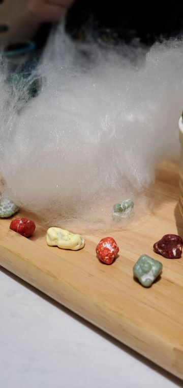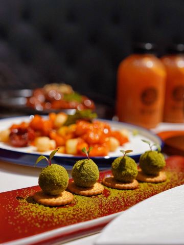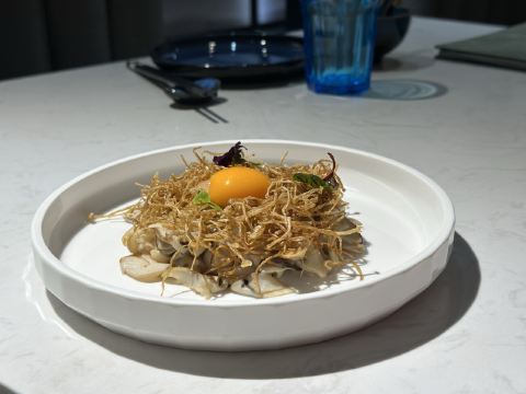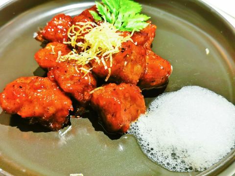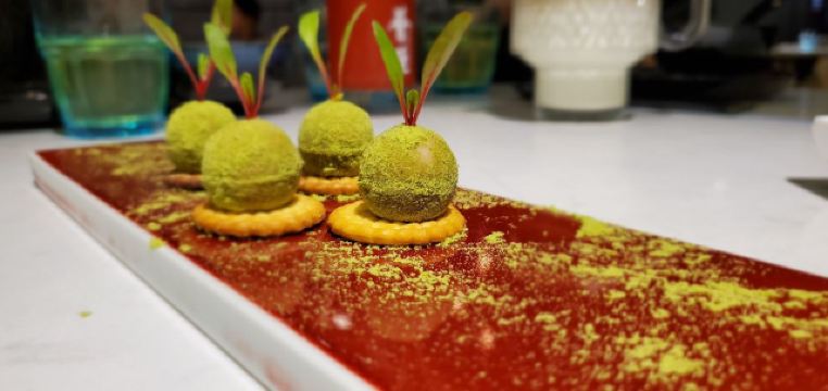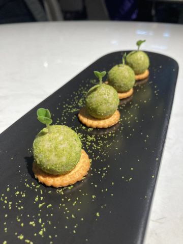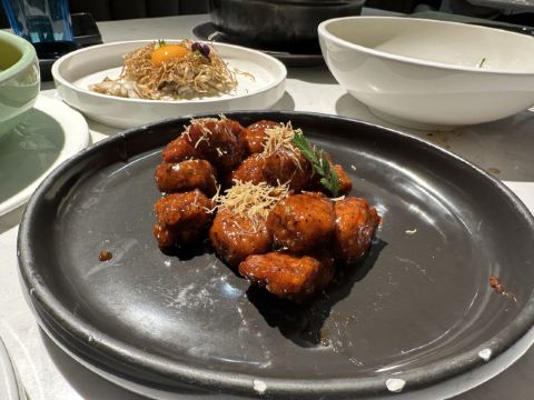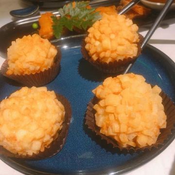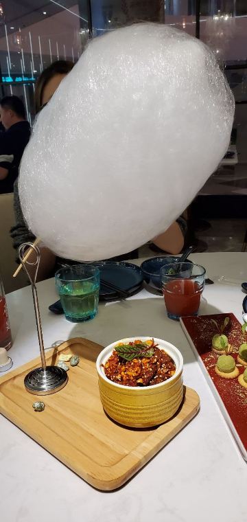 荟廷·晶萃在静安寺愚园路的晶品商厦内。餐厅以创意菜为主,蟹粉捞饭是主厨首推特色菜,果然色泽艳丽、鲜味浓郁,蟹粉分量十足,完全没有腥味。棉花糖裹牛肉造型亮眼,牛肉入味,且鲜嫩可口。鹅肝球造型可爱,入口奶香浓郁,非常美味。