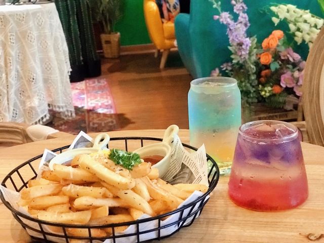🍃环境没的说,很不错。但是也有缺点,他们家地方太小了,位置不多,而且地方位置不是很好找。奈何还挺安静的不错。🉑🉑💗💗 和朋友慕名来打卡,最近黄梅天餐厅昏昏暗暗拍照很难拍好看,而且他们家灯光过于昏暗了,都是基本从头顶打灯照下来🌚🌚不喜欢。采光不好 大家要去建议天气好阳光明媚的时候去 🧡ྀི💛ྀི❤️ྀི里面很安静,小情侣和闺蜜比较适合打卡的地方👭,工作人员不多。不太会来来回回走,影响你♡💌♡菜式很一般吧,我和朋友点的下午茶,味道也就那样,蛋糕🍰一般没啥特别多,薯条还可以有。总体就一般般,主要和朋友也不是冲着这家餐厅的菜去的。纯属为了拍照的。这地方属于去了一次以后不太会去第二次的( •︠ˍ•︡ )纯属打个卡了(๑•̌.•̑๑) 饮料还不错,拍照很好看,也很好喝。位置设计很有创意,基本没和位置的布置都不一样哦ლ—(°◡°)-ლ