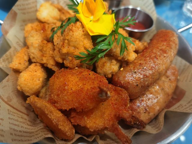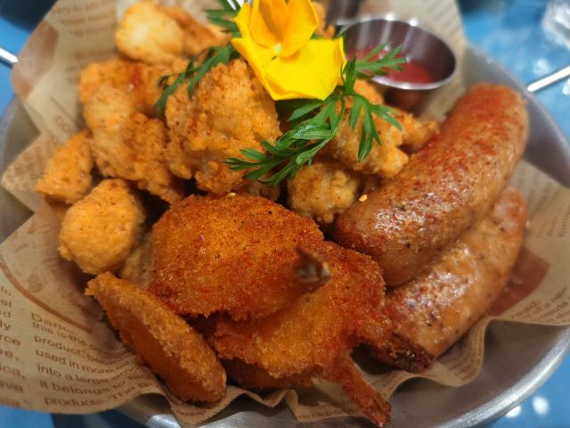 谧径莫奈花园餐厅,位于上海市的合川路上,生意不错。这里边有各色花朵植物作为装饰,所以进入餐厅可以闻到一股花香。西冷牛排是这家店的招牌菜,日式炸物拼盘好大的一盘,包括了炸大虾,鸡米花,香肠等等。各种意面味道也挺美味的。
