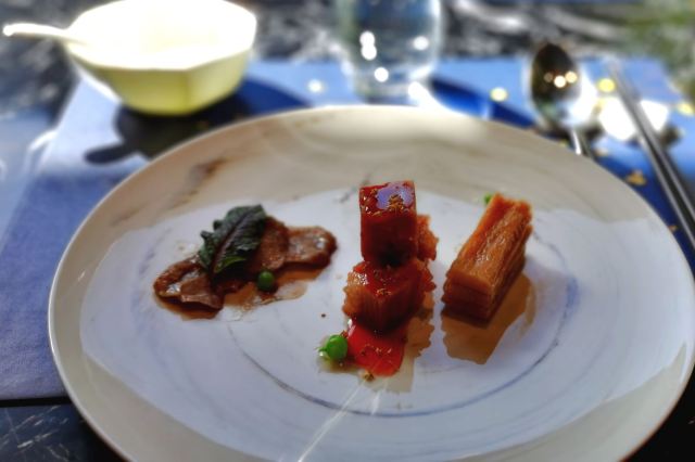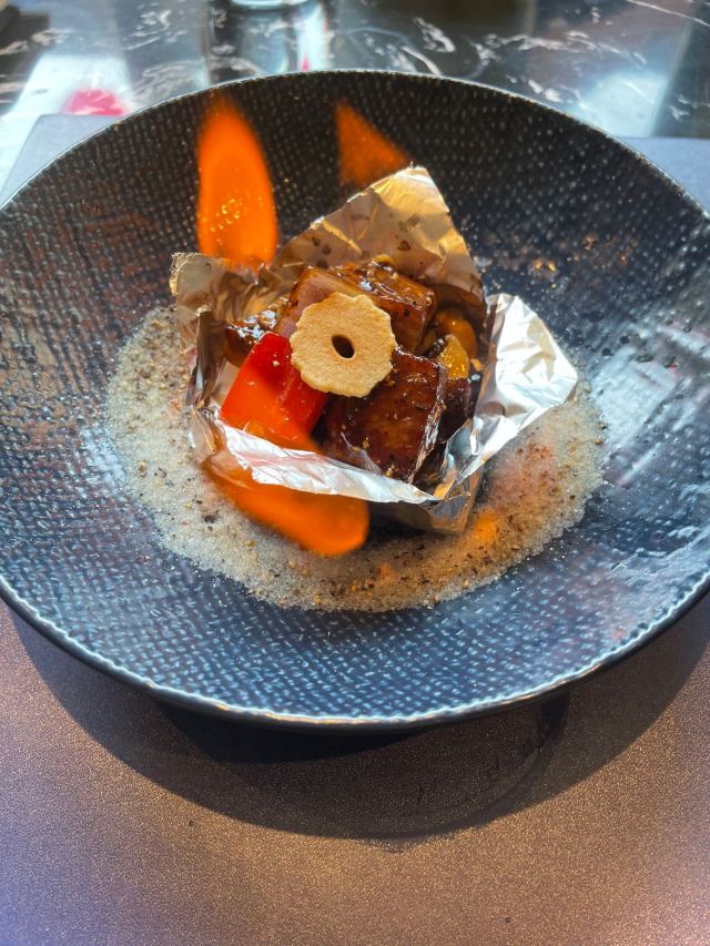 服务客气,舒服。菜品应该是改良粤菜,保留传统粤菜做法和味道的同时,融入了一些西餐手法。摆盘上也费了心思。位上的节奏控制地非常好,节日里还有小甜品送。