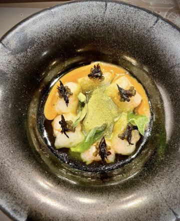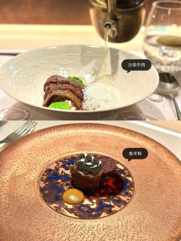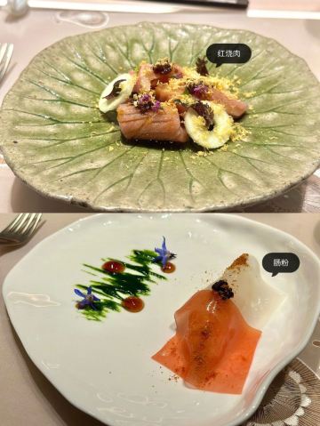 阳光的男孩之一上海|亚洲最佳女厨师👩🍳Obscura唐香🌟|||Obscura唐香,chef DeAille荣获2021年亚洲最佳女厨师,随之餐厅又在2022上海米其林榜单中斩获一星🌟 [星R]开胃茶 用芝麻做的绵密泡沫包裹来自福鼎的老白茶和广西六年陈的佛手柑,但入口芝麻香气寡淡且甜度很高[笑哭R] [星R]开胃小食 用中国百姓家中常用的三款调味料:蚝油、酱油、醋来做成的蚝油生菜、酱油生腌及糖醋羊肚菌。 [星R]红烧肉 用肥美的蓝鳍金枪鱼大腹来充当传统红烧肉中的猪五花。鲔鱼用黄酒稍许腌渍,搭配渍过的冬枣、芥末籽、紫苏花,但冬枣渍的还是甜了点,略显突兀… [星R]肠粉 福建小青龙肠粉,米皮则做了传统原味及西瓜味两种,再放上九年的鲟鱼子酱,但不得不又要说下这个米皮真的太甜了… [星R]蒜香红螺 海螺切片加入广式腊肠、黑蒜,再用玫瑰露酒爆香,螺盖则用酸梅酱制成,敲碎后拌着里面的海螺一起食用,满嘴的白酒芳香。 [星R]瓮仔鸡 一上桌松针香气就直接俘虏了我,松茸切片,底下则是千岛湖乌骨鸡做的鸡肉卷和粉糯菱角,一旁配的蘸料源自台湾的药膳鸡汤。 [星R]傣族酸汤鱼 西双版纳酸汤鱼,汤底加入酸木瓜、柠檬草等一系列当地钟爱的香草一起熬制而成,鱼肉选取的是油脂王者喉黑鱼,汤头非常正统,酸甜微辣出色的激发了喉黑的鲜美,太惊艳了! [星R]大地的恩赐 宁波年糕拌上牛肝菌酱和咸蛋黄泡沫,再刨上满当的黑松露。但黑松露品质普通,香气也不够突出。 [星R]麻婆“豆腐” 传统豆腐被换成了牛骨髓,并加入了牛筋、牛舌。牛筋牛舌炖到无可挑剔,骨髓的质地仿佛是真的在食用豆腐,愈发喜欢! [星R]思乡 用番茄清汤做底,鸡蛋做成布丁,番茄的鲜味回味悠长,但与鸡蛋布丁在味觉上有些格格不入。 [星R]沙茶牛肉 牛肉用沙茶调味,喷枪快速使其表面产生美拉德反应,倒入用虾熬煮的清汤。牛肉入口即化,沙茶的鲜甜完全渗透至肌理,漂亮极了! [星R]鱼羊鲜 用内蒙的乌珠穆沁羊+20年的白鲟鱼籽来呈现鲜这一风味。羊肉肥瘦相间,蘸上陈年发酵的腊八豆酱及鱼子酱,整个咸鲜味拔了好几个层次 [星R]甜品:解暑良药 [星R]主甜品:越剧蛋糕 [星R]Petit Fours 三个半小时的用餐体验,听DeAille讲述每道菜品的创意灵感,即便她中文还不太流利、对国内食材尚在不断学习,但看着这个站在门口