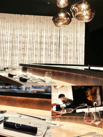 餐厅采用新中式装修,吧台上方的吊灯是英国Tom Dixon设计的熔岩灯,价值不菲,考究的细节装饰充满艺术美感,令人赏心悦目。这里主打新式中餐,由双主厨坐镇,以现代理念诠释中餐精髓,带给味蕾全新的愉悦享受。