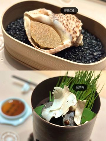 龙井虾仁,青椒炒腊肉,蓝龙虾花胶叉烧包,松子汤圆,四喜烤麸,鹅肝蛋挞,傣族酸汤鱼,沙茶牛肉,蒜香红螺,松露年糕,红烧“肉”,越剧蛋糕,龙虾肠粉