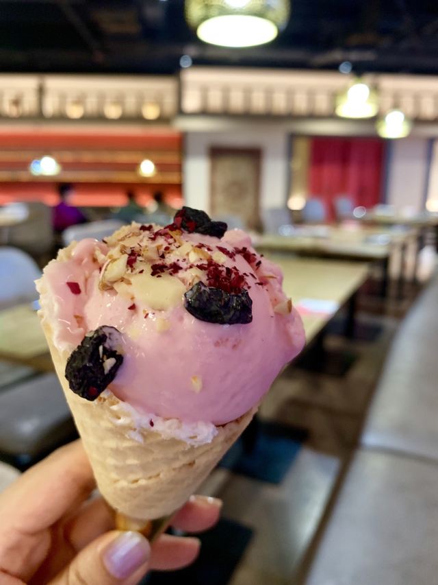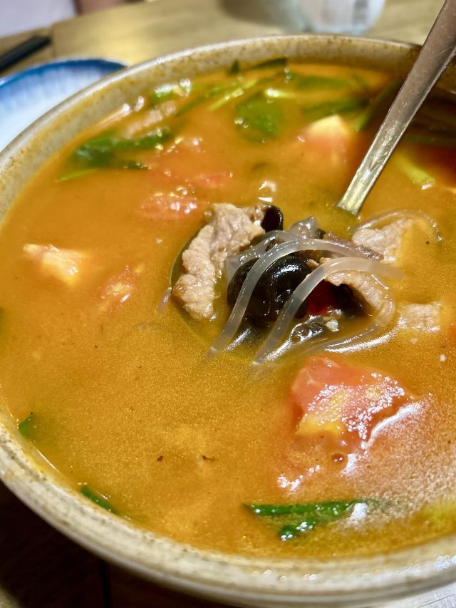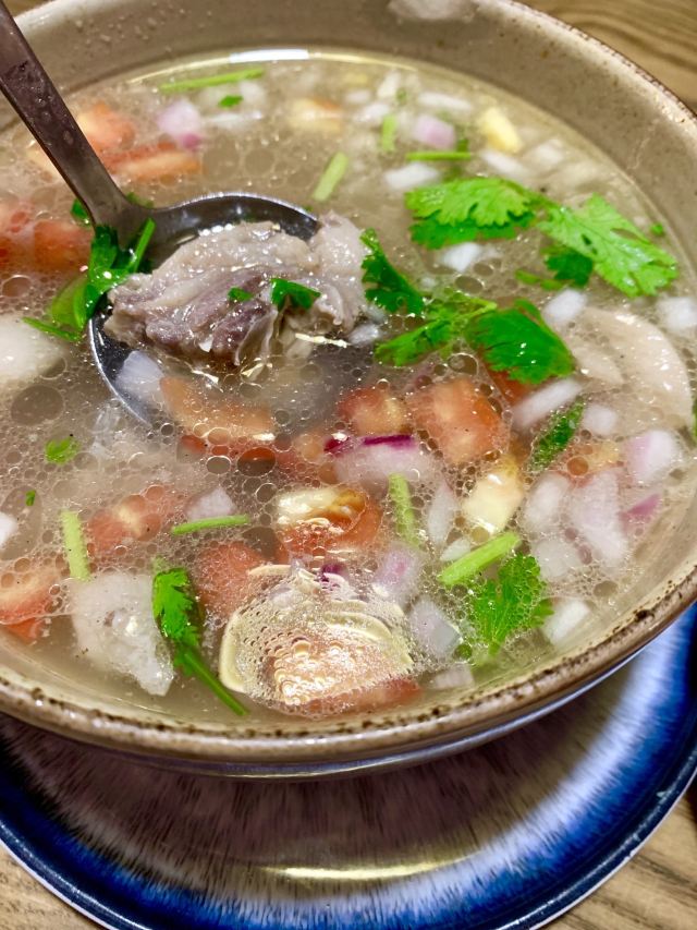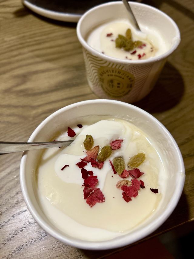 Yolanda_zy炎炎夏日,必须打卡各种羊肉。前两天吃了本地羊肉,今天吃新疆羊肉。新疆羊肉做法更多。这里的炭烤羊肉串是经典,必需来上几串,但爱原汁原味的一定不能错过清蒸羊排。砂锅一直煮着,锅底羊汤蒸汽向上,保持着羊排的热度,且一点水分都不流失,羊排鲜嫩无膻味[强]爱辣的可以配上特调的辣酱,回味无穷。感觉比羊肉串更鲜美。这里的烤包子也是美味多汁的,每次来都会点上一两个。夏日来份手撕麻椒鸡,鸡皮是脆脆的口感,鸡肉也鲜香,搭配麻椒非常爽口。这里的回民汤也非常喜欢,番茄菠菜牛肉粉条汤,番茄味浓郁,很解腻开胃。最后一定要来一份手工酸奶,配上新疆葡萄干和玫瑰花瓣,丝滑入口[调皮]