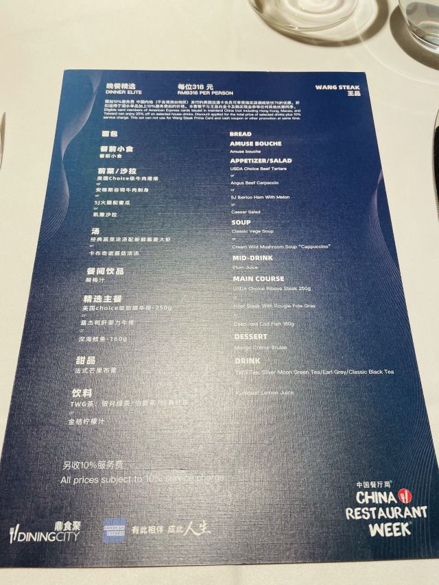 THE WANG时不时要和小姐妹拍拍照,约个漂亮饭,首先肯定是要漂亮的,打卡装杯绝对没问题。 再来说味道porterhouseT骨牛排,一边菲力一边西冷,菲力软嫩多汁,西冷有嚼劲,一块肉两种口感,既满足了小姐妹最近牙口不好的需求也满足了我喜欢吃有嚼劲的需求。 服务到位,能介绍菜品,及时调整餐具,服务干净利落又没有很刻意殷勤 赞👍🏻