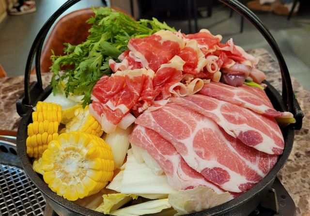 本来是一家烤肉店,但是店家拓展业务开发出了寿喜锅的吃法,上来就是满满一大锅挺好看,有肉有菜两个人吃刚刚好,服务员都很热情专业,虽然很忙但也来主动帮忙,挺好的