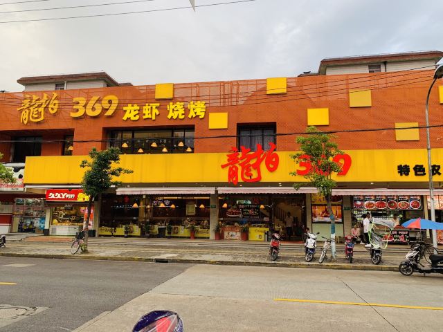 Longbai369longxia Barbecue梅雨季节来撸虾[鬼脸] 龙柏369龙虾烧烤,位于黄桦路红松路口,这招牌大的感觉把一边的街面商铺都承包了,绝对显眼到,你远远的就能看到~ 上下楼层的布置,一楼超大统厅,干净整洁~ 晚上连吃3种虾~ 蒜泥龙虾,蒜香扑鼻,龙虾Q弹~ 香辣龙虾,辣到酷爽,越吃越上瘾~ 椒盐虾菇,就是赖尿虾,每只脊背里都有虾膏~ 碳烤生蚝,差不多每个都有小孩巴掌大,表层铺满蒜泥,吃上去没有任何腥味,敲美味~ 烤大羊肉串,羊肉很嫩噢,边撸串边喝啤酒,真的超爽(注意⚠️开车不要喝酒啊!行车不规范,亲人泪两行啊!) 干锅牛蛙,内容丰富,️藕,薯片,莴笋,年糕,当然还有主角牛蛙,肉质鲜嫩没话说~ 养生黑豆腐,看着一锅乌漆麻黑的豆腐上桌,突突突突的翻滚着,犹豫中下筷,别看这豆腐其貌不扬,味道可以有呢,翻了一下,才发现原来锅中还有咸肉,木耳,平菇和黑豆腐一起炖煮,怪不得这豆腐完全是吸取了所有精华啊~ 总结,此店属于亲民接地气范围,适合三五好友下班后来撸串撸龙虾,如果住附近的话,更适合夏夜的宵夜圣地[耶]
