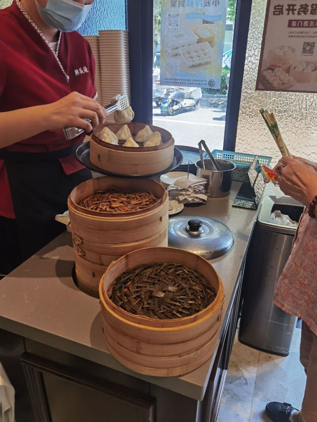 雨丝风片今天撞大运了。大老远跑去吃无锡小笼,下午三点半竟然已经卖完了。老板娘说等半小时会有。小笼还堵在路上。顺丰冷链的车子今天晚到了。店里已经没有原材料了,只有馄饨。我是三点三刻左右下单的。等到四点半左右,顺丰终于来了。见图一,门外那群人围着货车正在卸货。图二三,店员们正在搬货。五点,终于吃完现包现蒸热气腾腾的小笼和小馄饨走人。老板娘很会做生意。在等小笼期间,她让服务员给每位客人都送枣子茶。我觉得她家的枣子茶味道很好喝。等小笼期间还发生了件有意思的事情。不识字的文盲到店里来应聘,老板娘给她每个月三四千块,做扫地阿姨,她还不愿意。这年头劳动力成本上升,连文盲都这么值钱了!还是人民币太不值钱了呢?