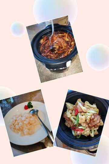 米扑扑水晶虾仁,很水嫩,鲜甜多汁,摆盘好看,苏浙汤包,皮薄馅多,汤汁鲜美,糖醋小排,超级美味,吃多也不会腻的,很舒服的,杨枝甘露,好喝有好看。
