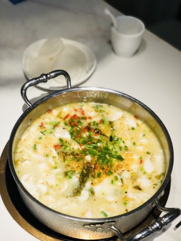 花花世界吃喝玩乐最爱酸菜鱼,听说德林老店新开就过去试试。 他家做酸菜鱼大约有20多年了,附近还是有口碑的。 位置在南丹东路的弄堂里,很容易找的, 环境今非昔比,优雅古典的中式风格,比之前 干净明亮,二楼感觉更好。 点了招牌黑鱼鸳鸯大锅,红汤其实不辣的。 他家汤底是鸡和猪肚熬制的,酸菜不是很酸, 黑鱼加了蛋清裹住的,鲜味十足。 这个季节来吃,开胃舒服。 芝士丸,吃起来Q弹,里面有芝士, 挺好吃的。 热气羊肉也不错,涮起来, 和鱼一起更加鲜美。 主食选了糍粑,糯口香甜。 非常不错的一餐,老味道,两个人来吃, 经济划算,可以来试试呦!