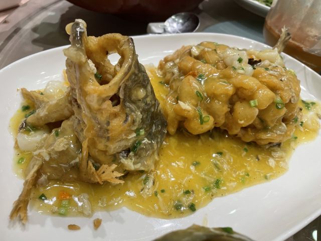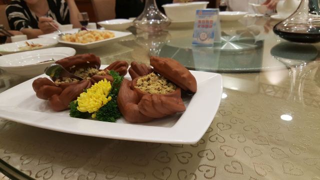 WangBaoHe Restaurant (HuangPu)这家建于清朝乾隆年间的老店,有着近三百年的历史,店里的装饰也是古色古香,有着老上海的作派;我们点了四冷菜,六个热菜,冷菜里有二个值得推荐,一个是糖醋小排骨,另外一个是老醋海蜇片,小排骨甜而不腻;海蜇片大而爽;热菜里蟹肉水晶虾爽口弹牙;蟹露灌虾球里的蟹黄鲜美;蟹粉烩豆腐的豆腐嫩滑可口。这些年来吃的最好一次本帮菜。