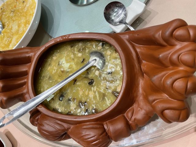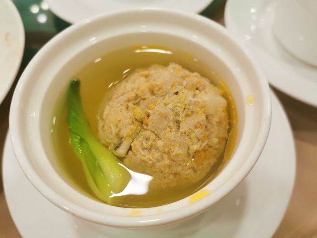 走遍天下XZ“王宝和酒家”虽然是王宝和的老店,店堂倒也整洁明亮,服务员阿姨们也很热情周到,价格也完全可以接受。 “蟹大王,酒祖宗”,菜品当然是围绕着大闸蟹来点单,清炒蟹粉,量很足,只是现在换了一个紫砂的容器,感觉没有“菊花蟹影”那个螃蟹盖子的漂亮。蟹粉狮子头和蟹粉三丝汤都很好吃,性价比也高。蟹粉小笼包,一般般。虾蟹两面黄,看上去特别诱人,可惜用的面饼,象是方便面一样的半成本,吃口就象橡胶一样,和常熟王四酒家现做的完全不能比。性价比最差的应该就是这个“蟹型酥”,28元一只,简直就是一个实心的面疙瘩。 等“九雌十雄”季节再合适一点,再去新的“王宝和大酒店”品尝一下“蟹膏溜银皮”。🦀️🦀️🦀️