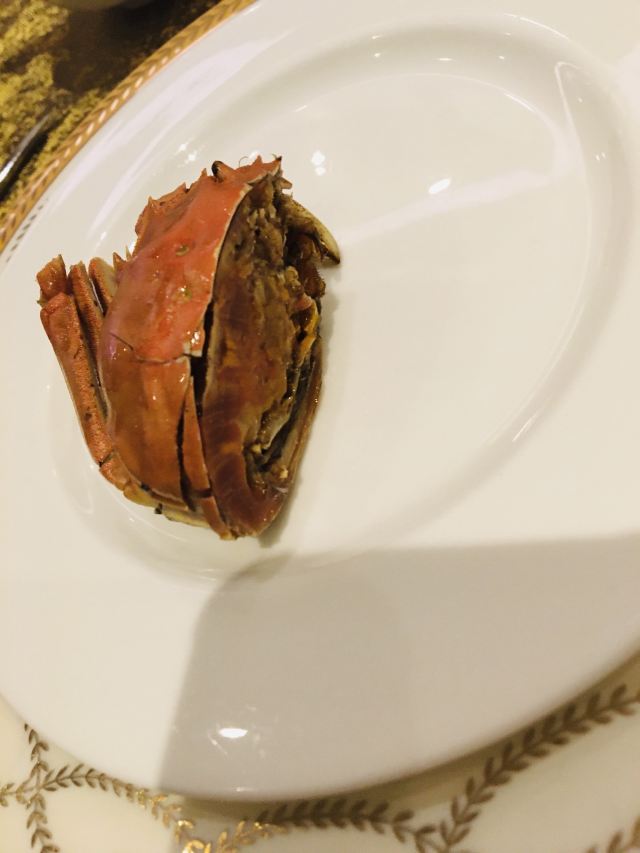 林默冉老妈心心念念的王宝和终于过来吃了! 「清蒸大闸蟹」推荐!果然是蟹祖宗!他们家的蟹真的好吃,十二月底了还很肥! 「蟹粉蒸小笼」蟹粉还是很明显的,汤汁也很鲜美,皮子也做的很好,推荐! 「蟹粉烩豆腐」蟹粉很十足,就是味道偏清淡。 「蟹壳黄」里面的馅料蛮多的,做的很不错。 「蟹油大虾卷」大虾很Q弹,蟹黄很大颗,也是清淡的菜。 「酒香草頭」量蛮大的,味道不惊艳。 「煎烹河蟹斗」满满的都是蟹粉!记得放蟹醋一起吃。 「太极蟹盒」很有特色的菜兼点心!比虾球那种好吃多了,有蟹粉还有虾,放在面包里,香香的。 「宝和醉雌蟹」没有以前爸爸带回来的好吃,可能新鲜度稍微差点,不过,解馋可以。
