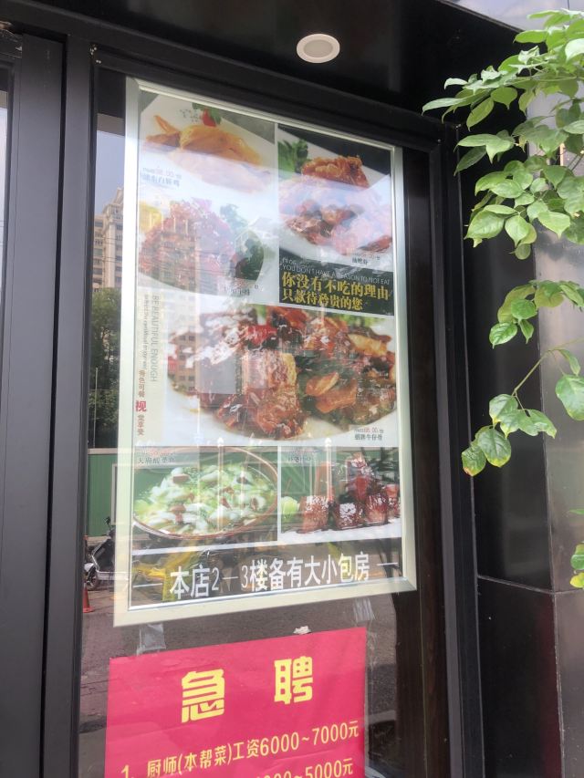 外婆红烧肉,响油鳝丝,白斩鸡,招牌牛仔骨,油爆虾,松子鲑鱼,椒盐基围虾,四喜烤麸,椒盐排条,糖醋小排,烧鹅,菜泡饭,干煎鲳鱼,葱烤河鲫鱼,酱爆鲜鱿鱼,上汤娃娃菜