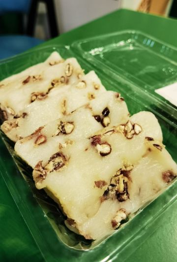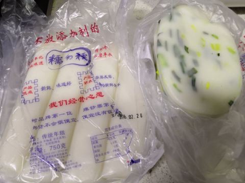 【环境】 搬迁至新址的店,第一次来,和原先店的格局似乎差不多,各类糕团产品。门面比之前好像大了一点点。 【服务】 速度挺快的,价格总和的计算也很快。 【口味】 葱油年糕是这家的特色,感觉其他地方也买不到。一般油煎的烹饪方式,也可以蒸。都挺好吃的,油煎更合适。 八宝饭的规格有四种,买了300g的,个头不大,里面豆沙挺多的,不是很油润,味道一般,没有想象中那么好。 传统年糕,10元一包的那种,蛮好吃的,家里人也喜欢,买回家后,趁软就可以切了,放硬切起来不方便。做了白菜肉丝炒年糕,很赞呐!