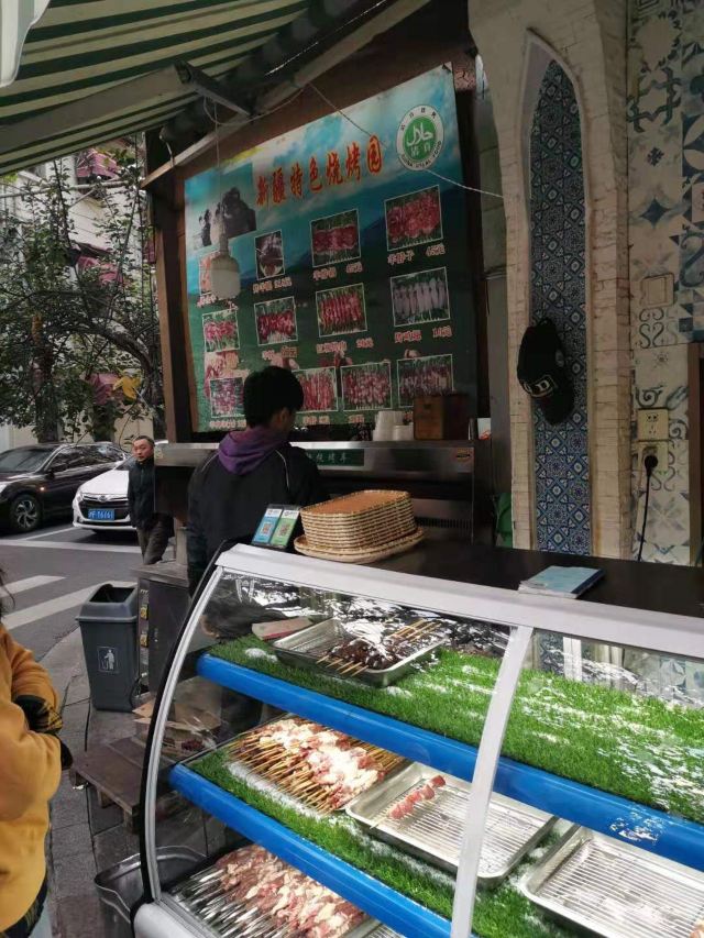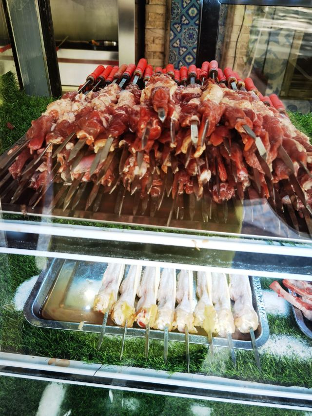某一天,刷到这家店,看菜单就觉得正宗,当下决定来吃饭! 🌿华丽的吊灯、厚实面料的桌布,还有每个角落都有的假花💐引起了我的好奇心,baidu说,桌布假花都是新疆妈妈爱的室内装饰,太可爱了罢! 👤店里客群,大概3成蓝眼睛,还有许多新疆同胞,充满异国感 🍖红柳烤肉---20元/串 铁串烤肉10元,红柳更大些,有点小辣,真的好吃,就是这个就是这个!每人一串必须啊!(当然你可以点更多😂) 🥠烤包子---5元 菜单上没有事外面在烤的,可以点进来吃,打包回去也不错,真的香! 🐔大盘鸡---78元(小) 该什么味儿就什么味儿,大盘鸡里的土豆也非常糯,但我觉得大家反而可以试试其他菜 🥗毛芹炒肉---65元 🥙馕炒肉---68元 好多菜看着都好相似,毛芹炒肉还不错,有点酸酸辣辣的不是平时吃的那种味道, 🍎拔丝苹果---40元 不夸张地说,是我吃过最好吃的拔丝苹果👍🏻,外面的糖有坚果和椰丝的香味。会吃的都知道,这菜必须趁热分开哦! 🍺大乌苏啤酒可以喝喝,还有🥛酸奶和🥤新疆奶茶可以选择的,价格也都合理 🛎服务员都是新疆人,普通话沟通基本没问题,人都很热情,菜价适合,很适合好久没见的朋友或者同事聚餐,感觉很快乐☺️