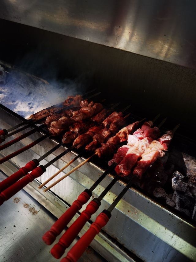 夏半夜_花花某一天,刷到这家店,看菜单就觉得正宗,当下决定来吃饭! 🌿华丽的吊灯、厚实面料的桌布,还有每个角落都有的假花💐引起了我的好奇心,baidu说,桌布假花都是新疆妈妈爱的室内装饰,太可爱了罢! 👤店里客群,大概3成蓝眼睛,还有许多新疆同胞,充满异国感 🍖红柳烤肉---20元/串 铁串烤肉10元,红柳更大些,有点小辣,真的好吃,就是这个就是这个!每人一串必须啊!(当然你可以点更多😂) 🥠烤包子---5元 菜单上没有事外面在烤的,可以点进来吃,打包回去也不错,真的香! 🐔大盘鸡---78元(小) 该什么味儿就什么味儿,大盘鸡里的土豆也非常糯,但我觉得大家反而可以试试其他菜 🥗毛芹炒肉---65元 🥙馕炒肉---68元 好多菜看着都好相似,毛芹炒肉还不错,有点酸酸辣辣的不是平时吃的那种味道, 🍎拔丝苹果---40元 不夸张地说,是我吃过最好吃的拔丝苹果👍🏻,外面的糖有坚果和椰丝的香味。会吃的都知道,这菜必须趁热分开哦! 🍺大乌苏啤酒可以喝喝,还有🥛酸奶和🥤新疆奶茶可以选择的,价格也都合理 🛎服务员都是新疆人,普通话沟通基本没问题,人都很热情,菜价适合,很适合好久没见的朋友或者同事聚餐,感觉很快乐☺️