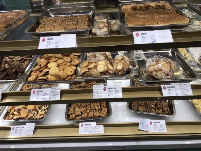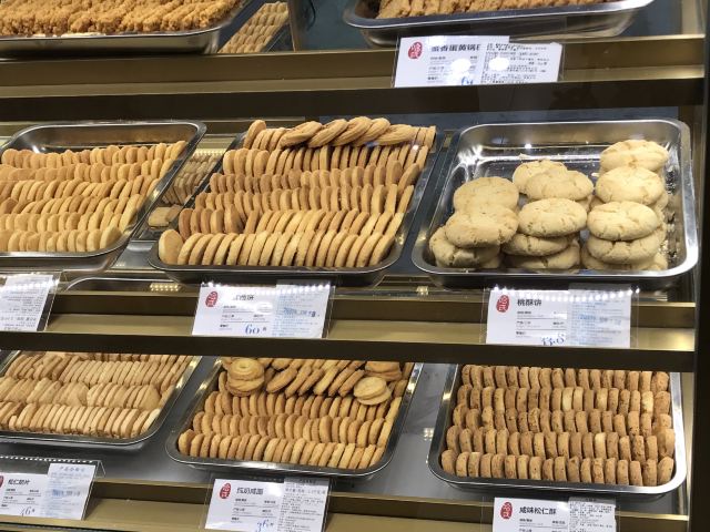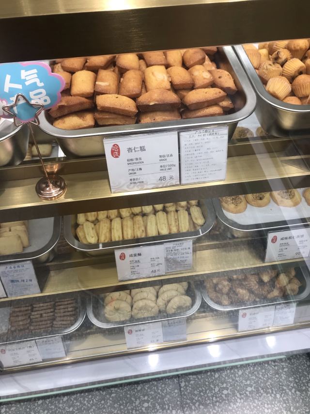经营的是中国传统糕点的店,很受中老年食客欢迎。店里一半卖香烟,一半卖糕点,里面布置得很简单,但是店面超干净,服务态度也很好,会耐心的告诉你不同的品种有什么口味。里面的杏仁酥、蛋黄条什么的,买的人很多的。中秋时节还提供鲜肉月饼,排队的人很多,有老字号的风范。