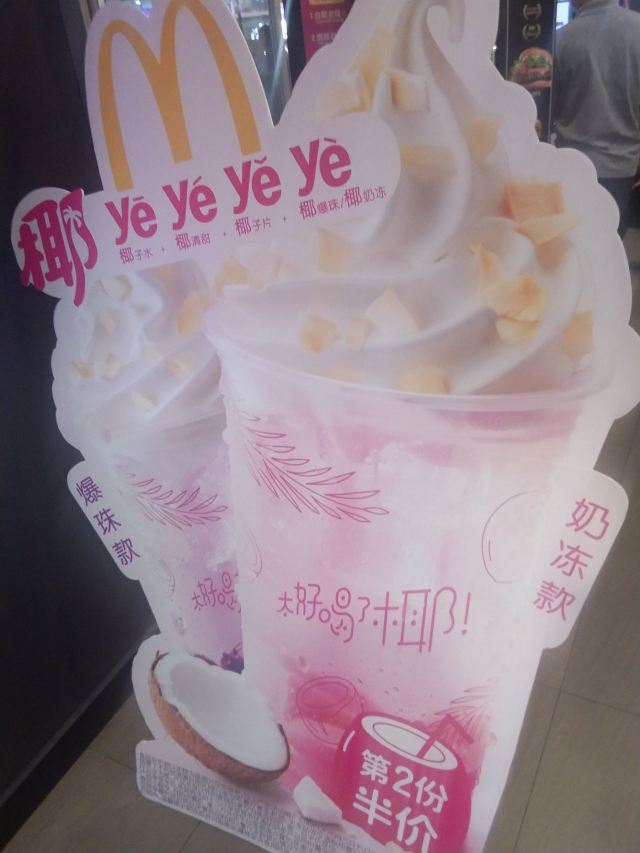 麦当劳的圆筒,甜品站购买第二只半价,这个第二件半价很多年了,很有诚意,麦乐酷那种也是好喝的,汽水与冰块与冷饮的故事,少了冰块冷饮与汽水相撞是要产生强烈的化学反应的,只能多加一个和事佬在里头。