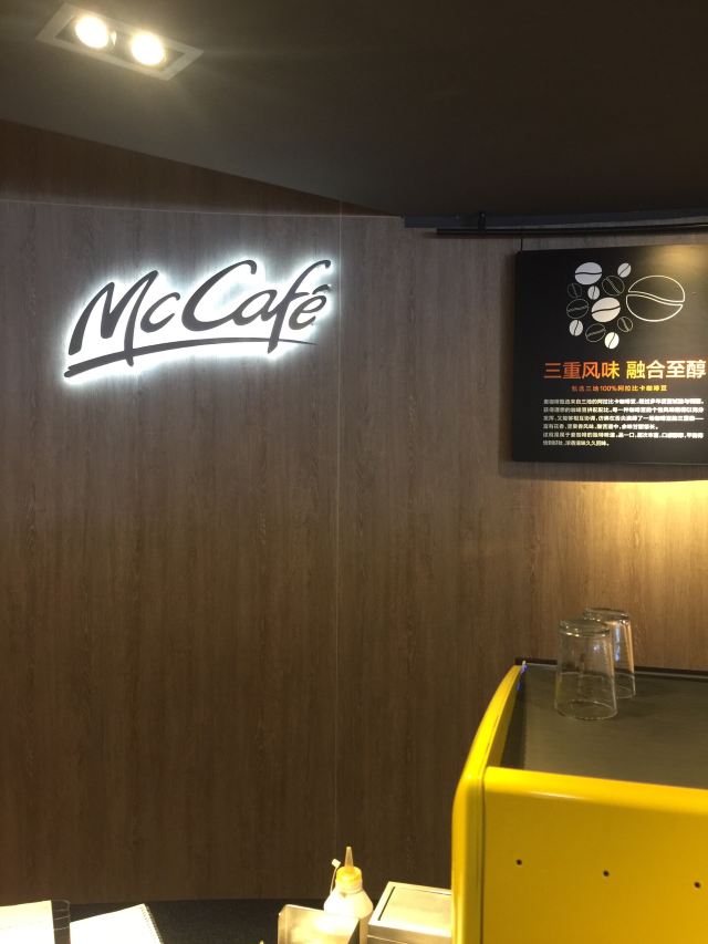 麦咖啡,麦当劳旗下的快餐式咖啡馆,星巴克极力想摆脱只卖咖啡的形象,与此相反的是,麦当劳极力想进军咖啡市场,主打“鲜煮”牌和“低价”牌。