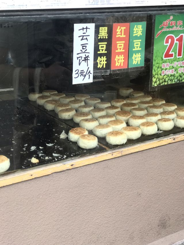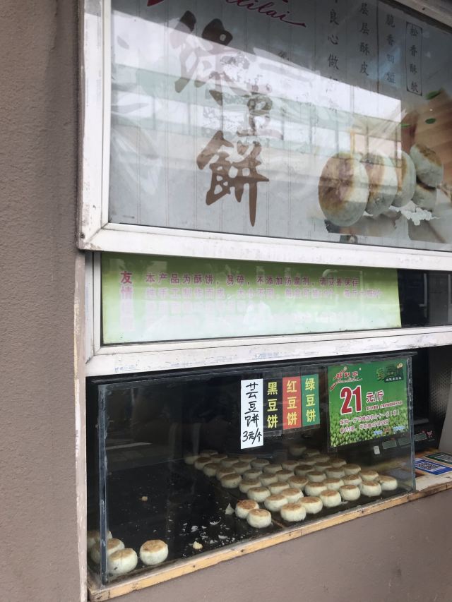 之前很火很火的一家网红绿豆饼店 几乎每天都要排队 店很小 就一个售卖窗口 前几年看到他们家还开了各种分店 现在只剩下他们一家了 上海唯一的正版店 店里有三个品种(红豆饼 绿豆饼和黑豆饼) 黑豆我不是很喜欢 所以就买了一盒红豆饼 相比绿豆饼 红豆饼的味道更甜一些 个人还是更喜欢吃绿豆饼 味道一如既往的好吃