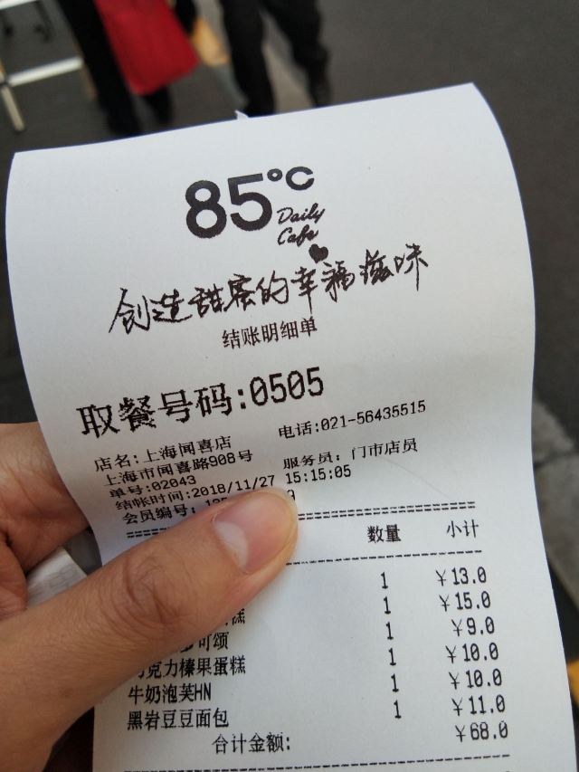 85°C比较经常去的一家85度c,需要坐车过去,不堵的话来回公交车一个半小时吧。 以前想吃奶油小方都是去红宝石的,现在去85度C经常买了,一买就会买很多很多。 今年生日的蛋糕券差点浪费了,还好进账号看见了,一年消费1000大洋到了生日就送价值118的蛋糕,很划算。
