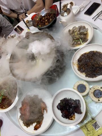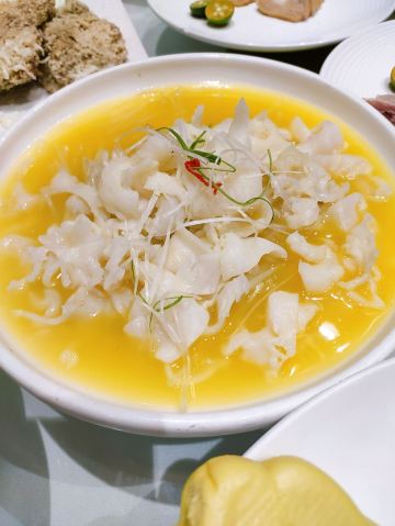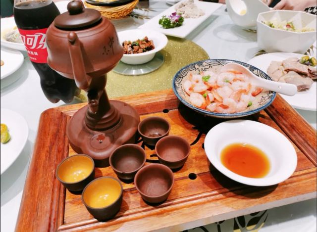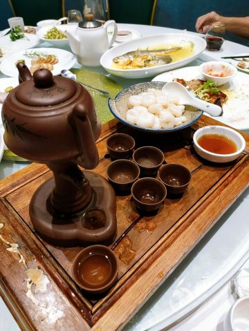 买了某电视购物频道的10人团购餐,趁着周末过带上亲朋好友过来吃一顿,还是很不错的,位置很方便,也能够停车,当然因为生意太好了,人也真不少,之前预约完全约不到包间了。 这家店的大厨人气很高,一直是人气美食节目嘉宾,十人套餐的性价比很高,菜品整体也不错,印象最深的是茶道虾仁,很有特色,靠吸铁石控制茶壶倒水,其他菜里鸡汁大黄鱼真的很嫩,而且是新鲜的鱼肉,甜品里面的红豆沙汤圆馅料很足。所有菜的量还是可以的,十个人就加了2个素菜。 总得来说还是很满意的,值得推荐。